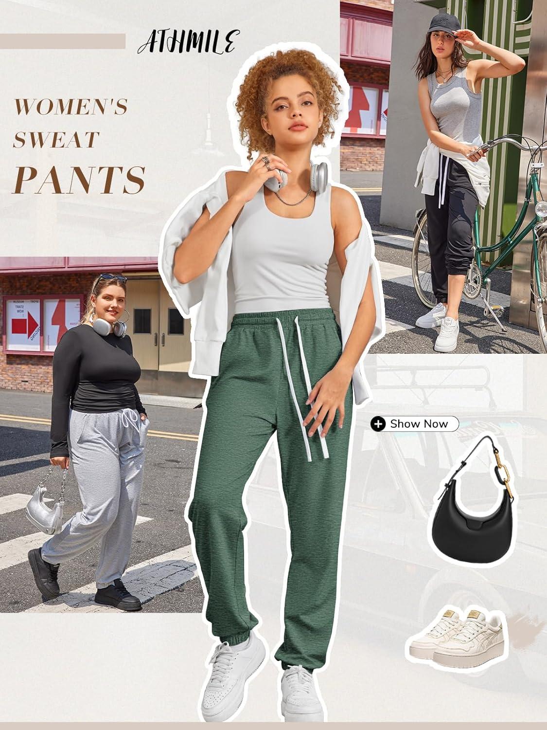 ATHMILE Baggy Sweatpants for Women with Pockets-Lounge Womens Pajams Pants-Womens Running Joggers Fall Clothes Outfits 2025(Green)