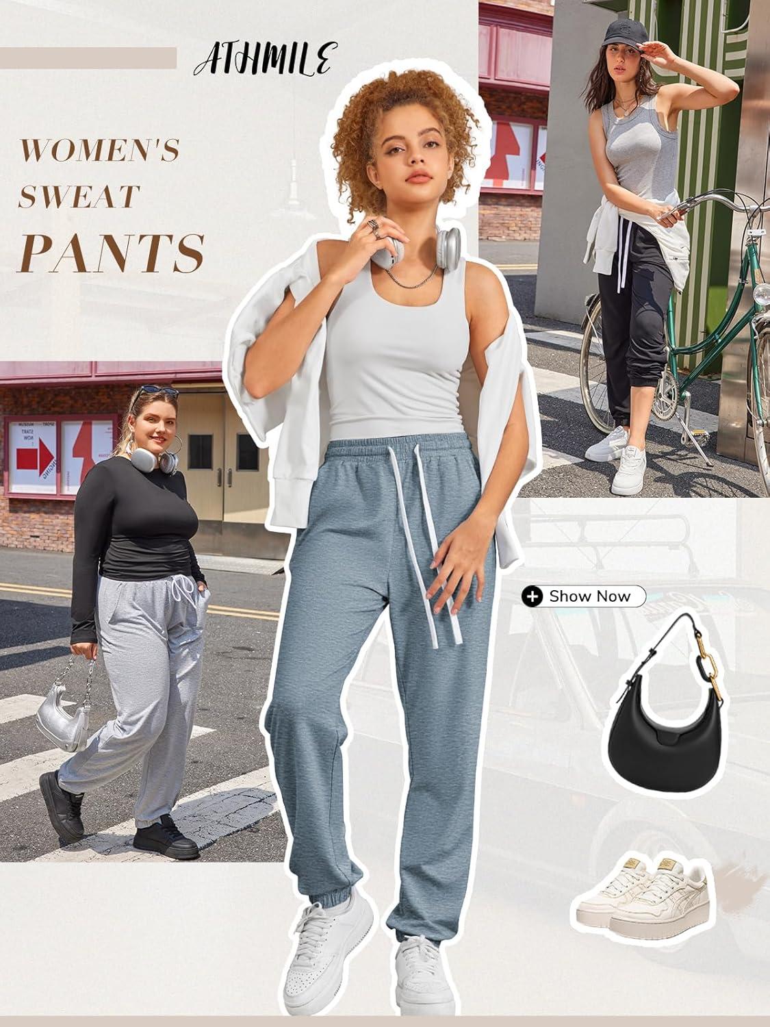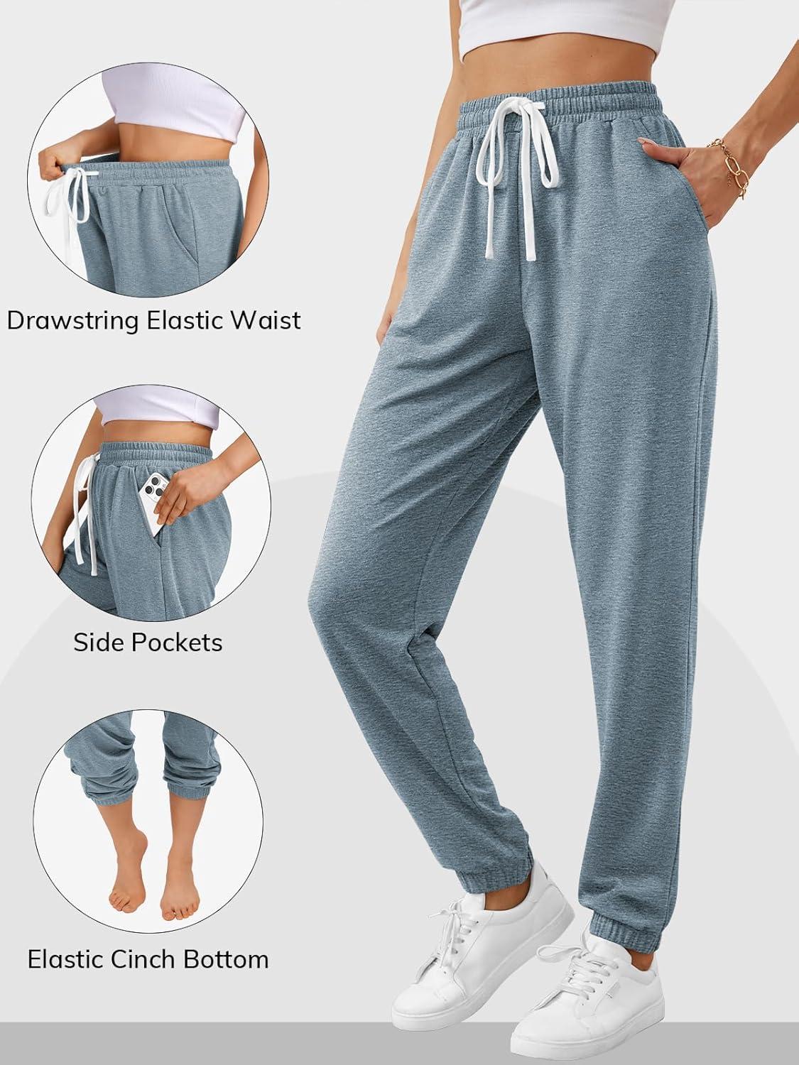 ATHMILE Baggy Sweatpants for Women with Pockets-Lounge Womens Pajams Pants-Womens Running Joggers Fall Clothes Outfits 2025(Grey Blue)