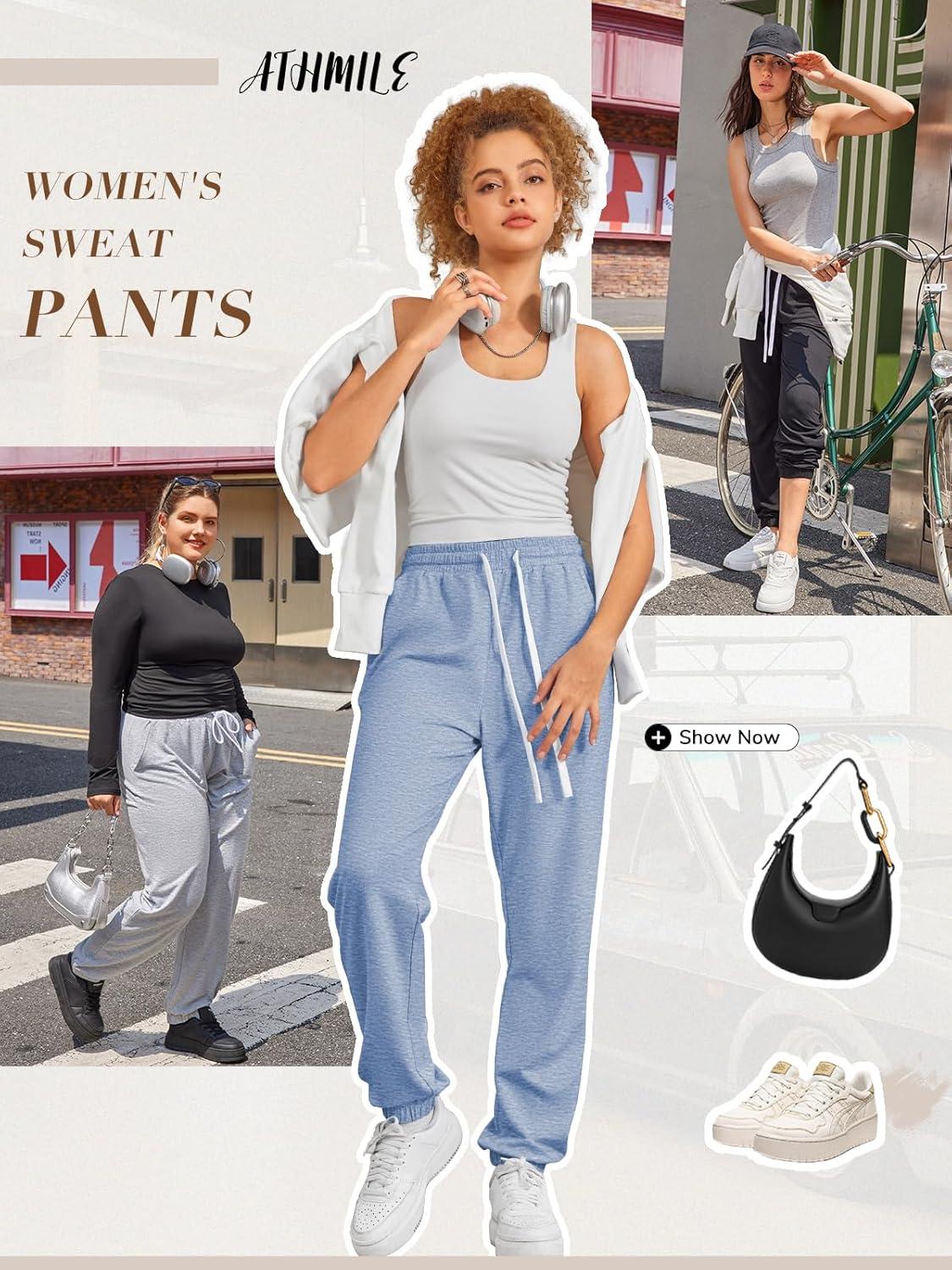 ATHMILE Baggy Sweatpants for Women with Pockets-Lounge Womens Pajams Pants-Womens Running Joggers Fall Clothes Outfits 2025(Light Blue)