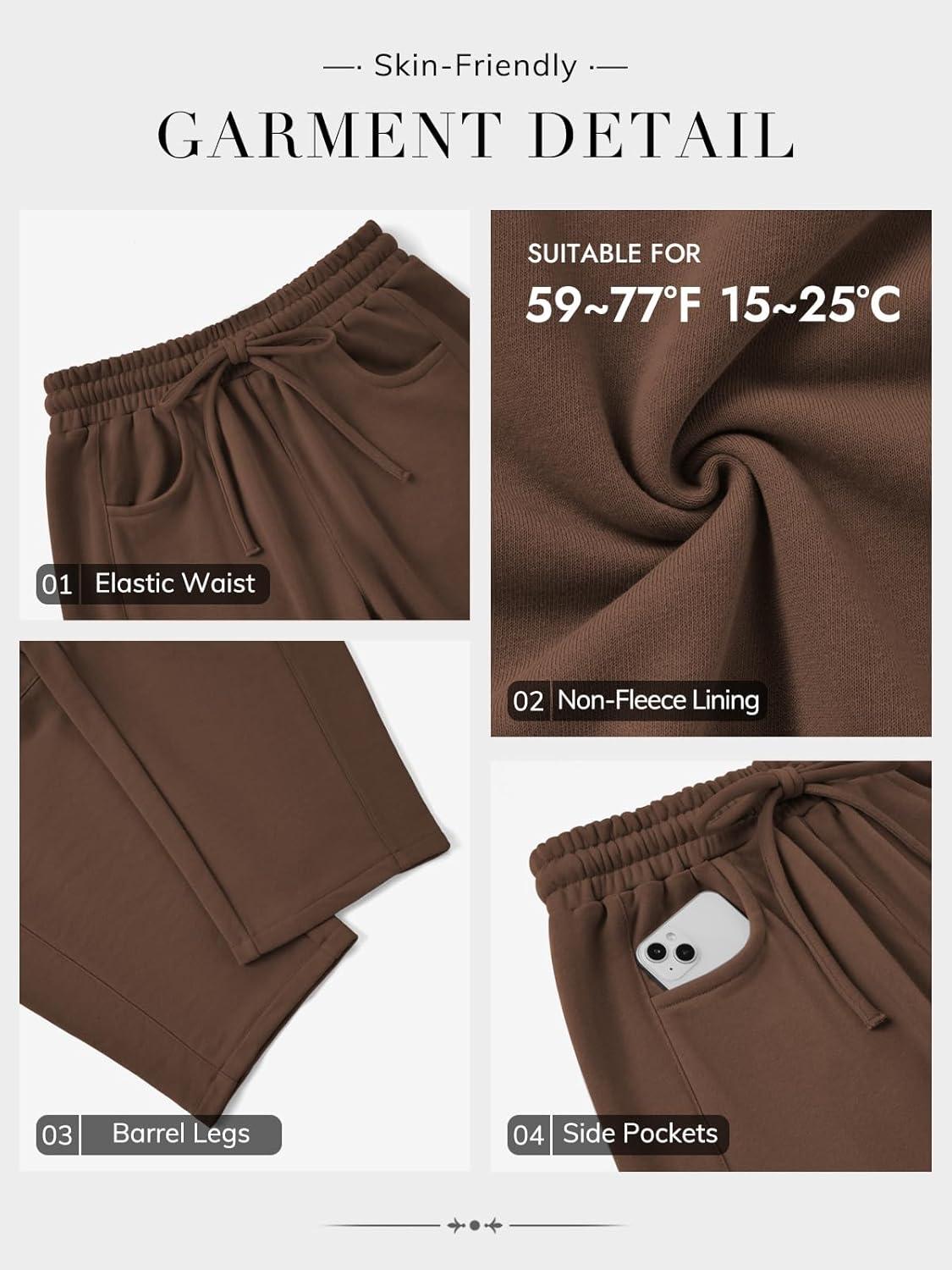 ATHMILE Barrel Sweatpants Women Fall Fashion Wide Leg Pants 2025 Baggy Lounge Comfy Flowy Sweat Pants with Pockets(Coffee)