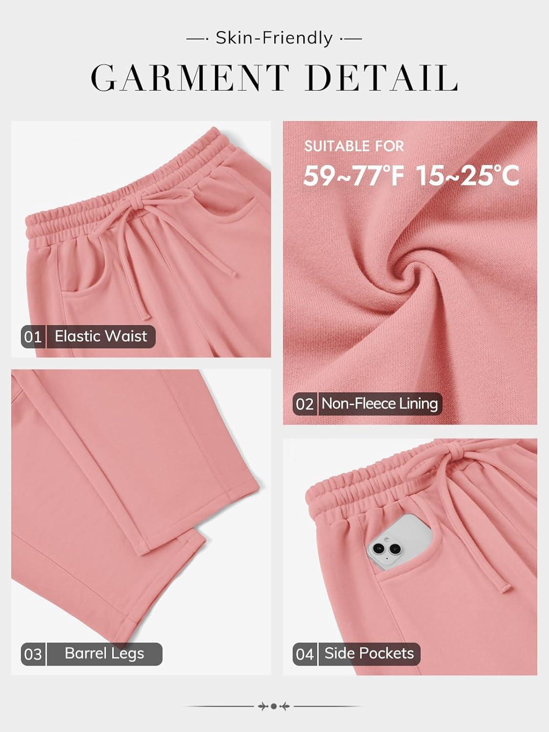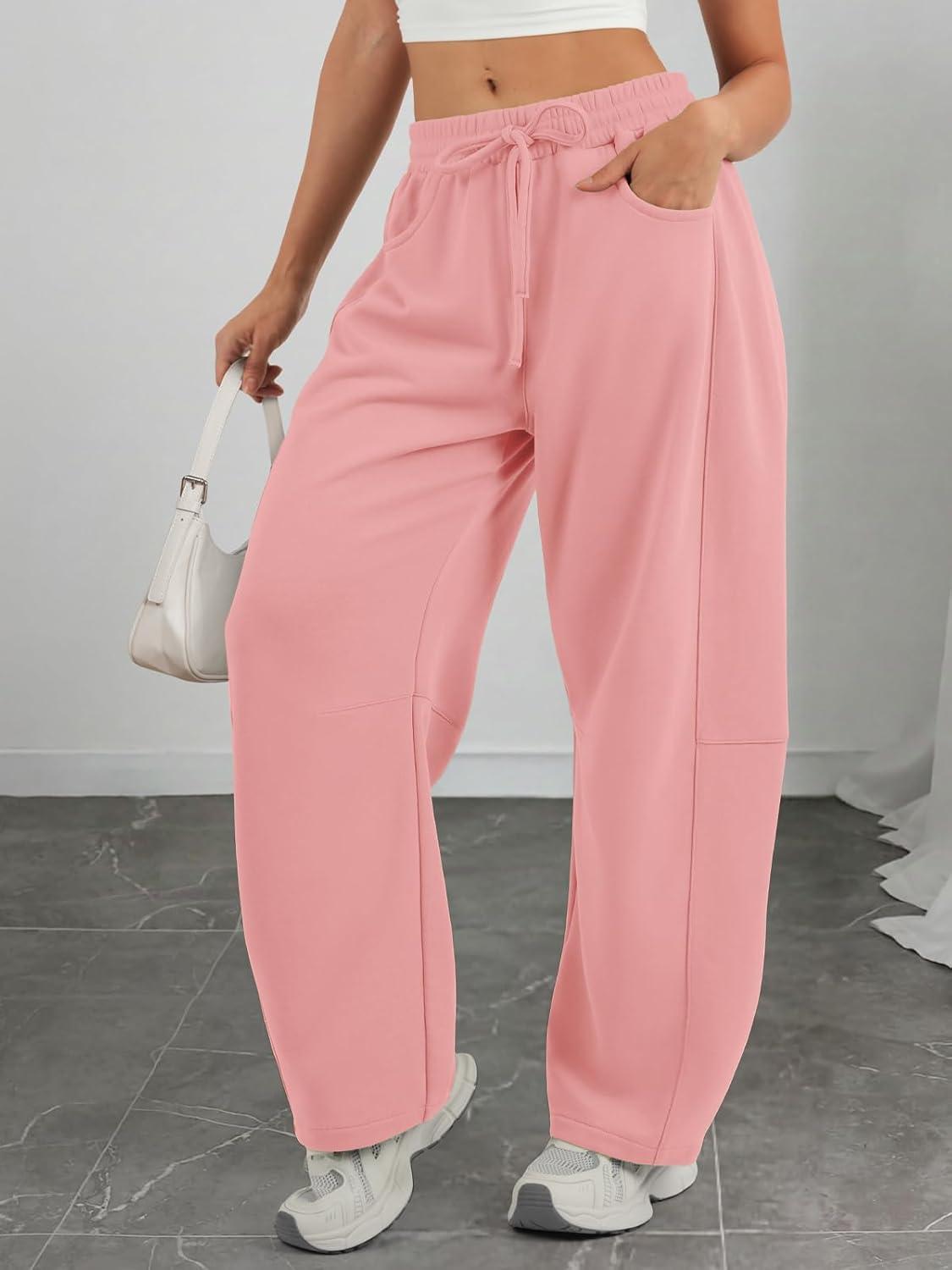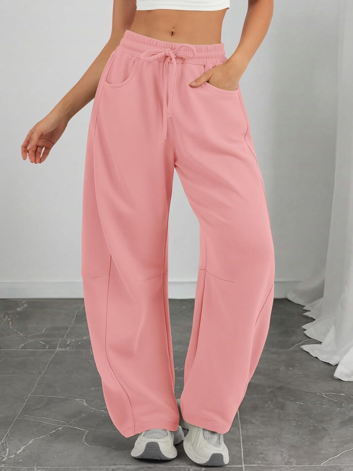 ATHMILE Barrel Sweatpants Women Fall Fashion Wide Leg Pants 2025 Baggy Lounge Comfy Flowy Sweat Pants with Pockets(Pink)