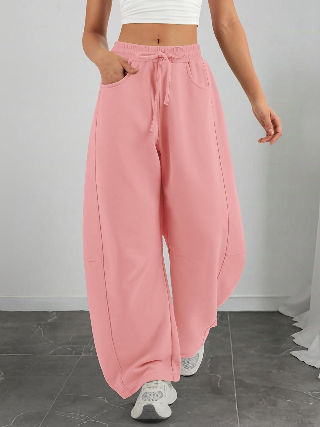 imageATHMILE Barrel Sweatpants Women Fall Fashion Wide Leg Pants 2025 Baggy Lounge Comfy Flowy Sweat Pants with PocketsPink
