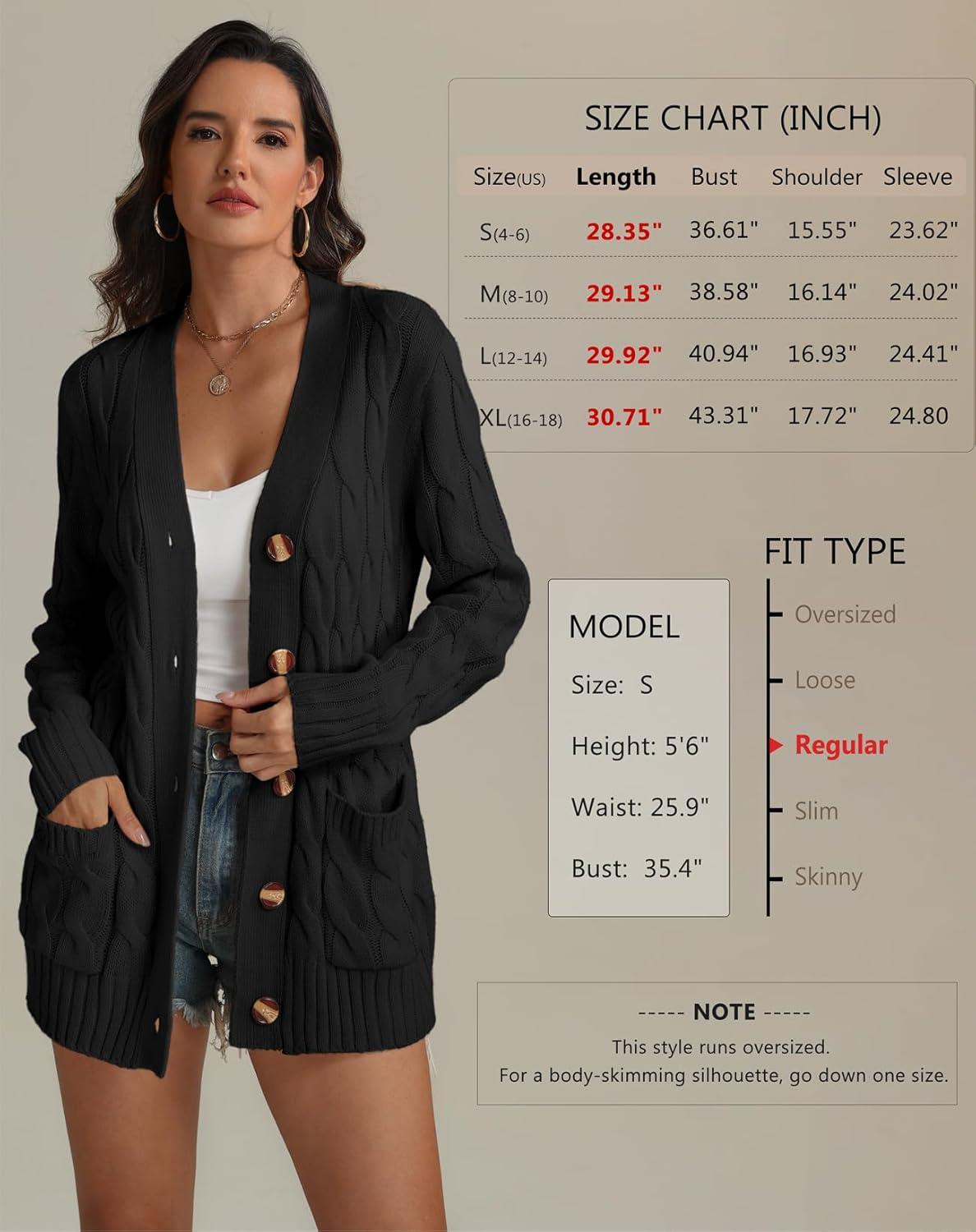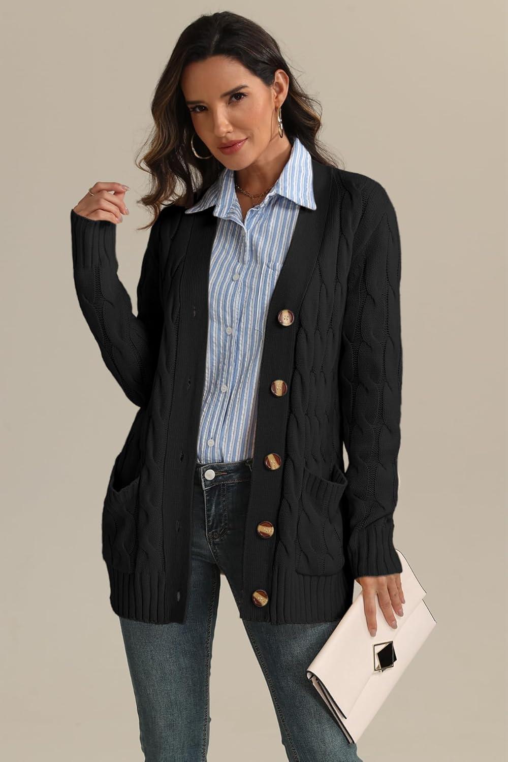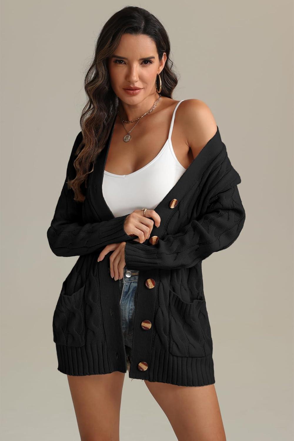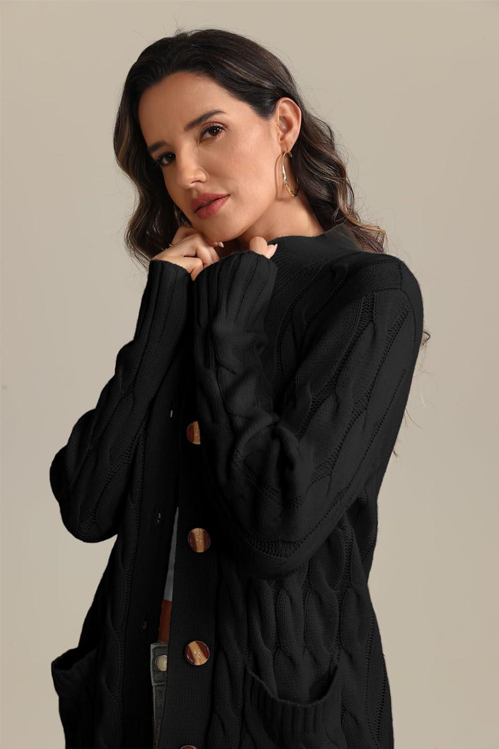 ATHMILE Cardigan Sweaters for Women Fashion Open Front Cardigans 2025 Fall Outfits Womens Long Sleeve Cable Knit Button Coats(Black)