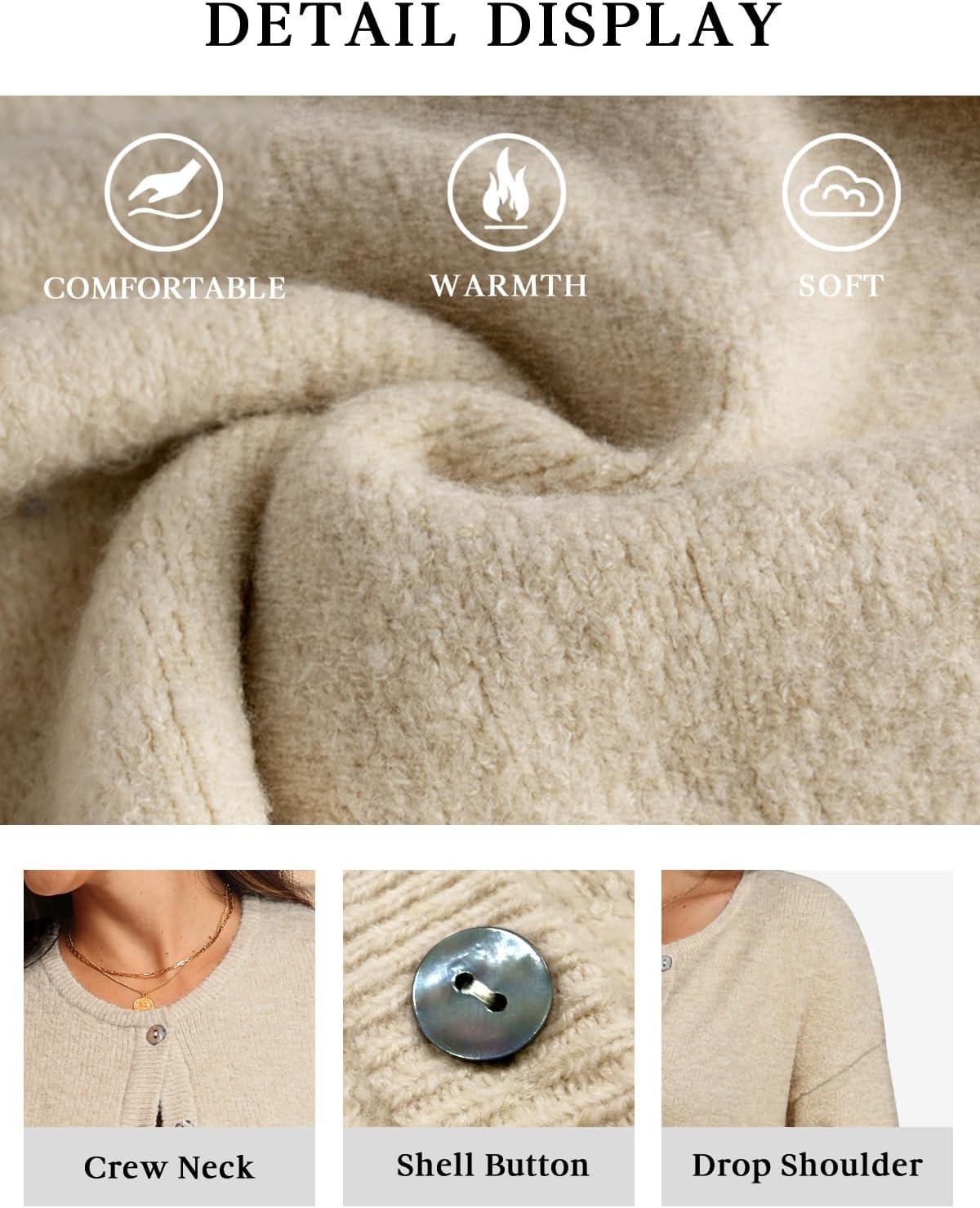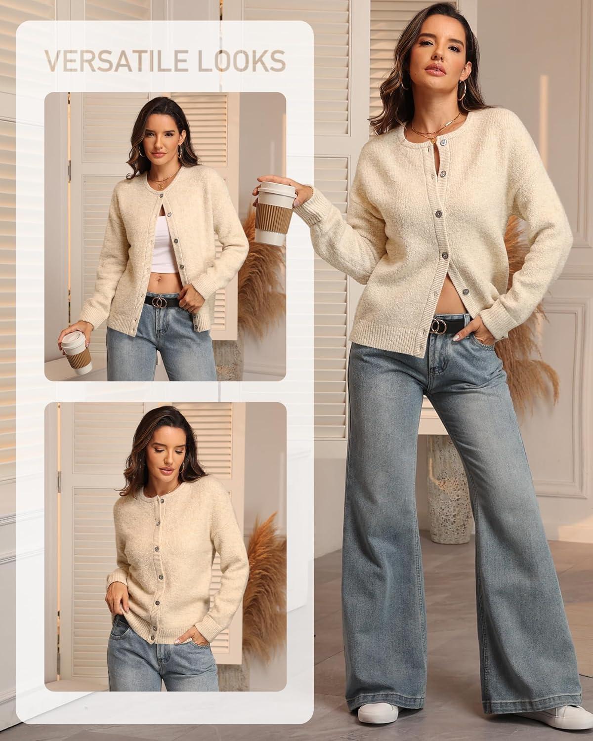 ATHMILE Fall Long Sleeve Cardigans for Women Sweater Fashion Open Front Winter Button Down Crewneck Loose Knit Jacket 2025(Apricot)