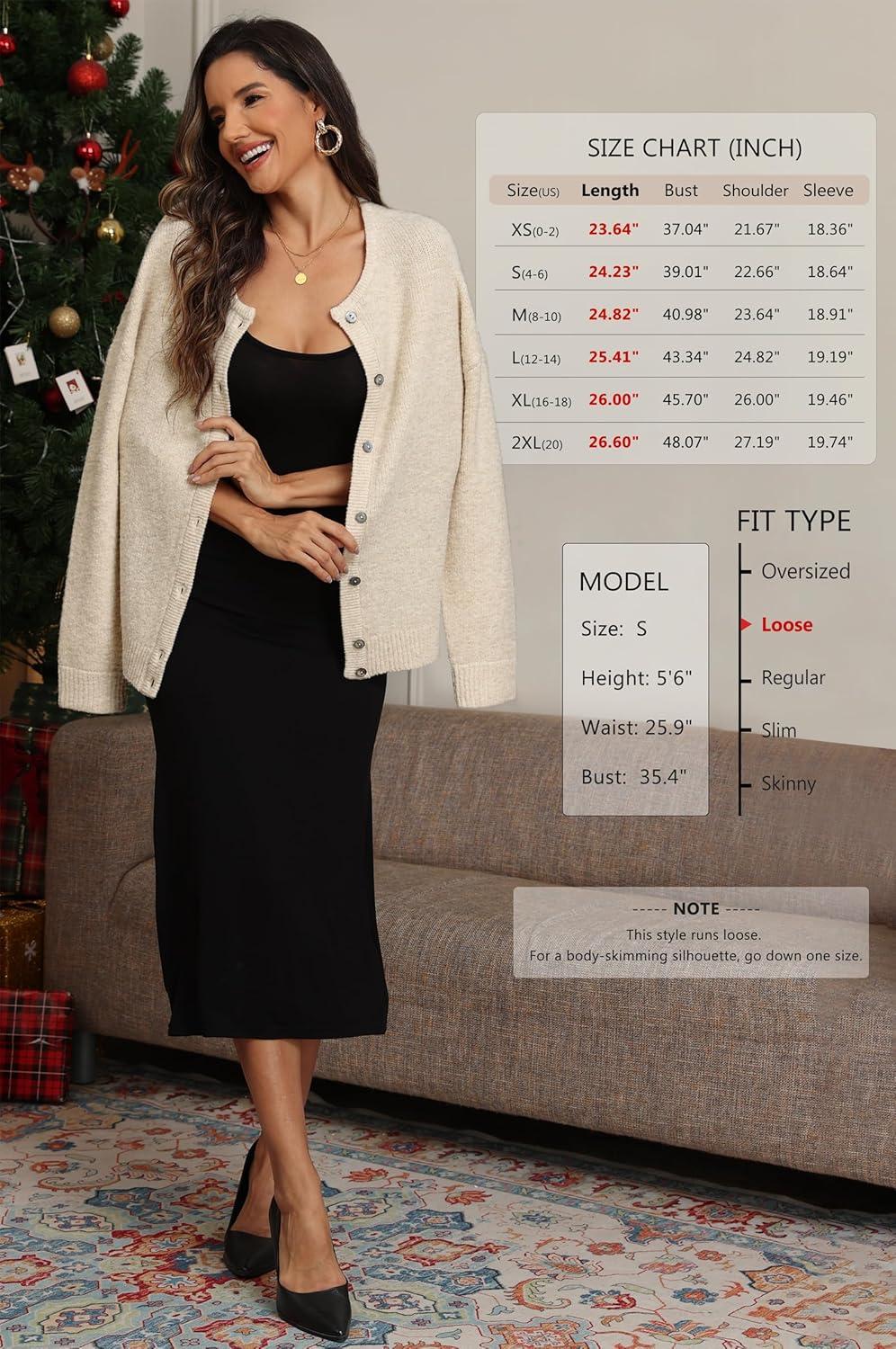 ATHMILE Fall Long Sleeve Cardigans for Women Sweater Fashion Open Front Winter Button Down Crewneck Loose Knit Jacket 2025(Black)