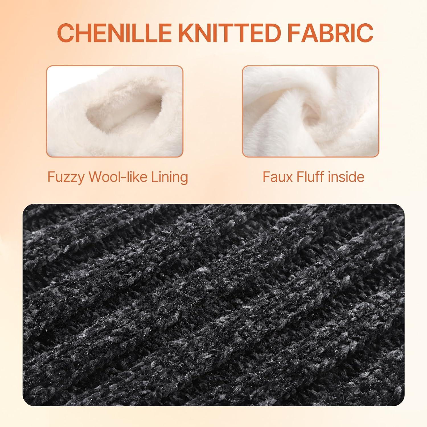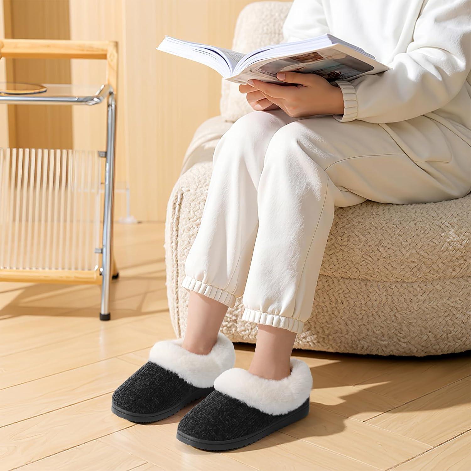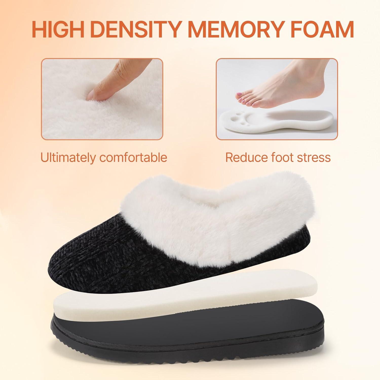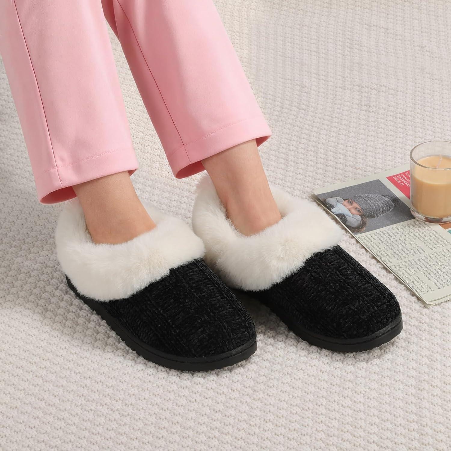 ATHMILE Fuzzy Fluffy Slippers for Women Memory Foam Knit Womens Slippers Non-Slip Bedroom Indoor Outdoor House slippers Shoes for Woman Closed Back(Black)