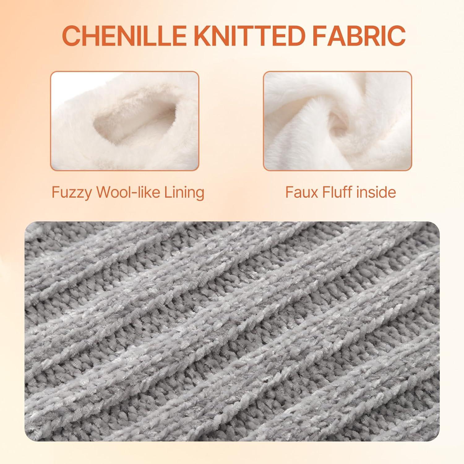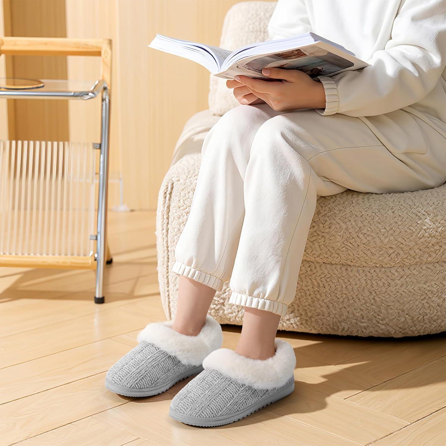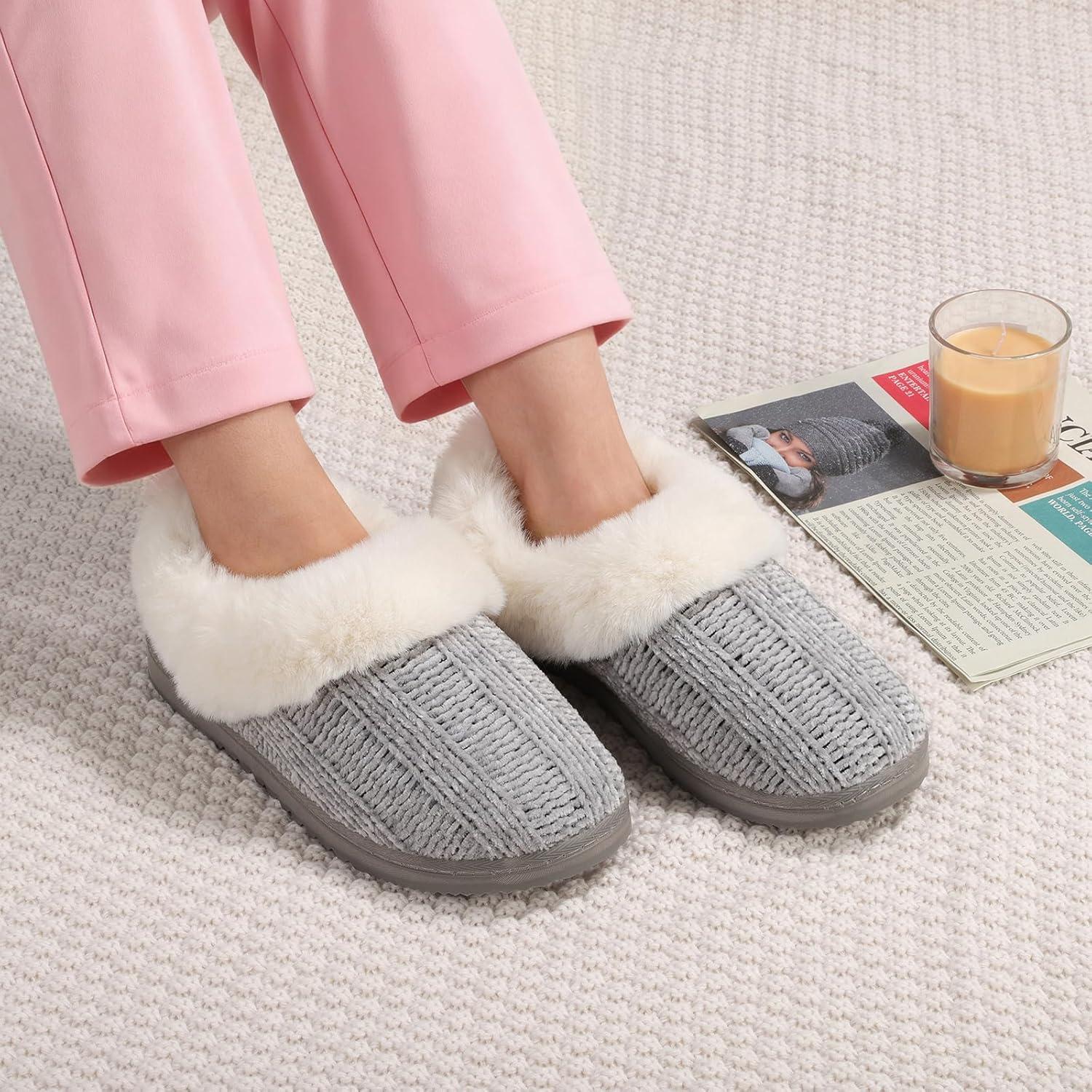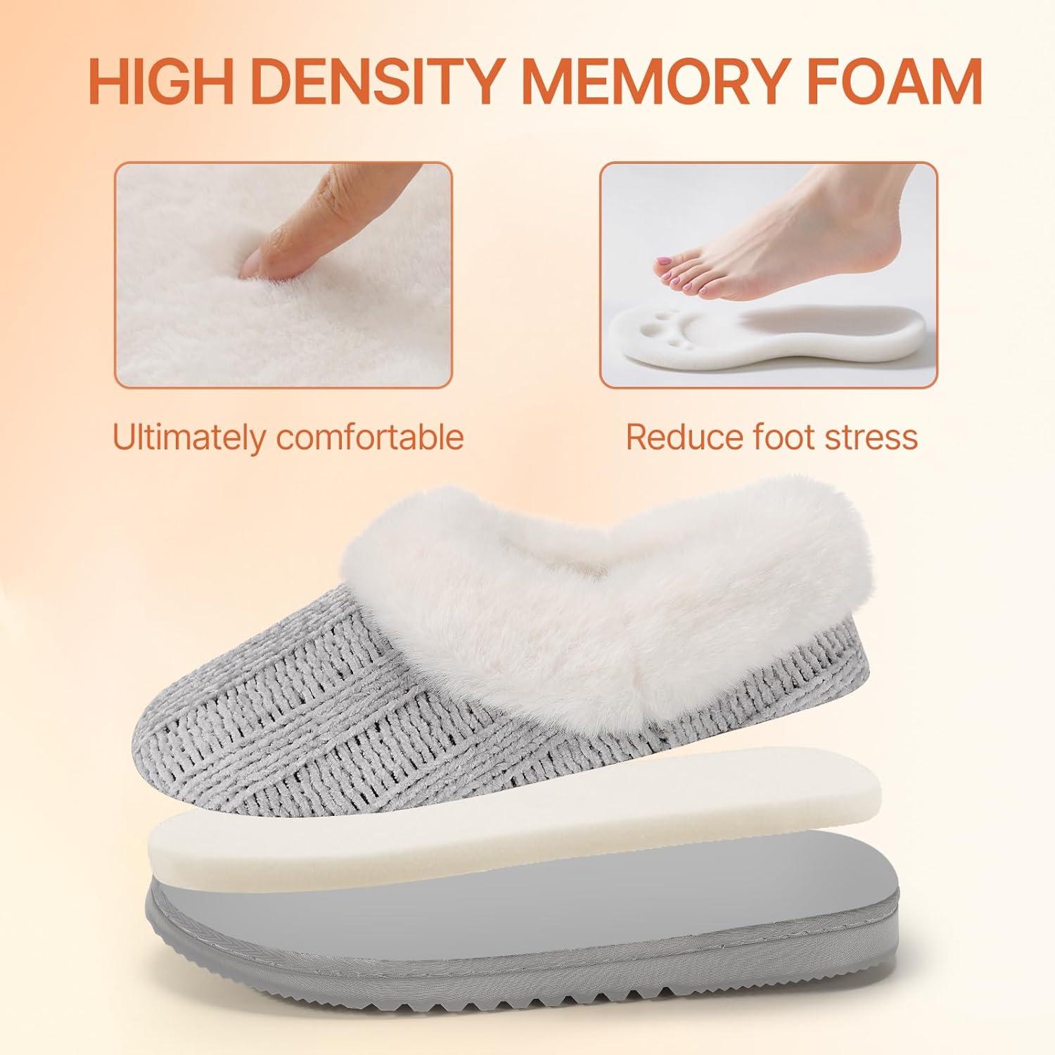 ATHMILE Fuzzy Fluffy Slippers for Women Memory Foam Knit Womens Slippers Non-Slip Bedroom Indoor Outdoor House slippers Shoes for Woman Closed Back(Grey)