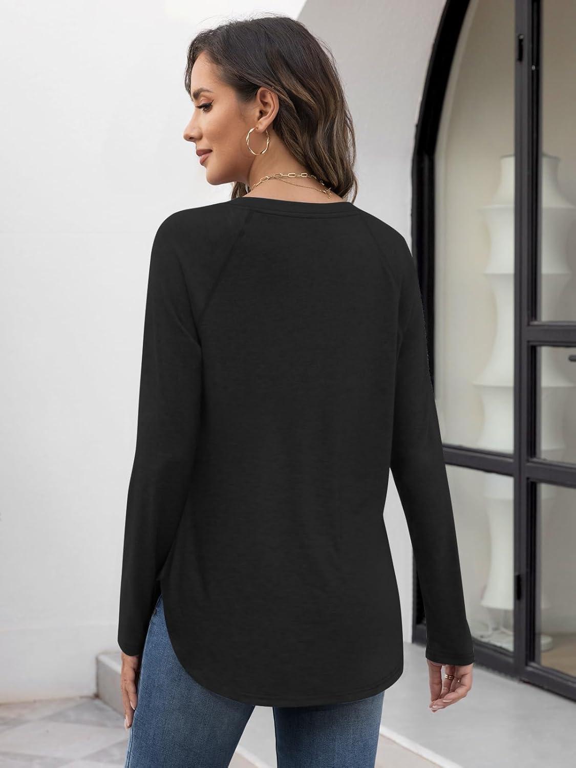 ATHMILE Long Sleeve Shirts for Women Fall Outfit 2025 Fashion Casual T Shirt Round Neck Basic Loose Tunic Tops(Black)
