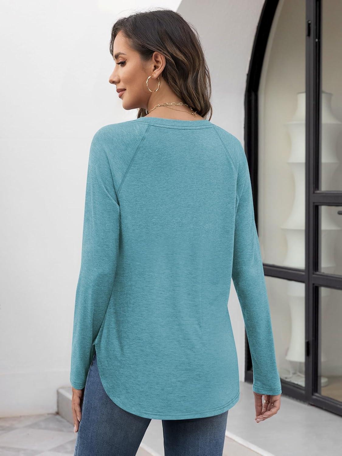 ATHMILE Long Sleeve Shirts for Women Fall Outfit 2025 Fashion Casual T Shirt Round Neck Basic Loose Tunic Tops(Blue Green)
