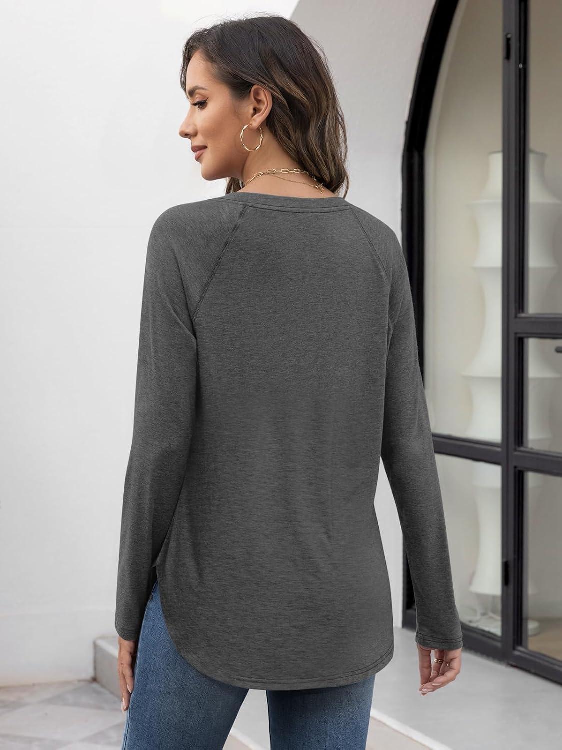 ATHMILE Long Sleeve Shirts for Women Fall Outfit 2025 Fashion Casual T Shirt Round Neck Basic Loose Tunic Tops(Dark Grey)