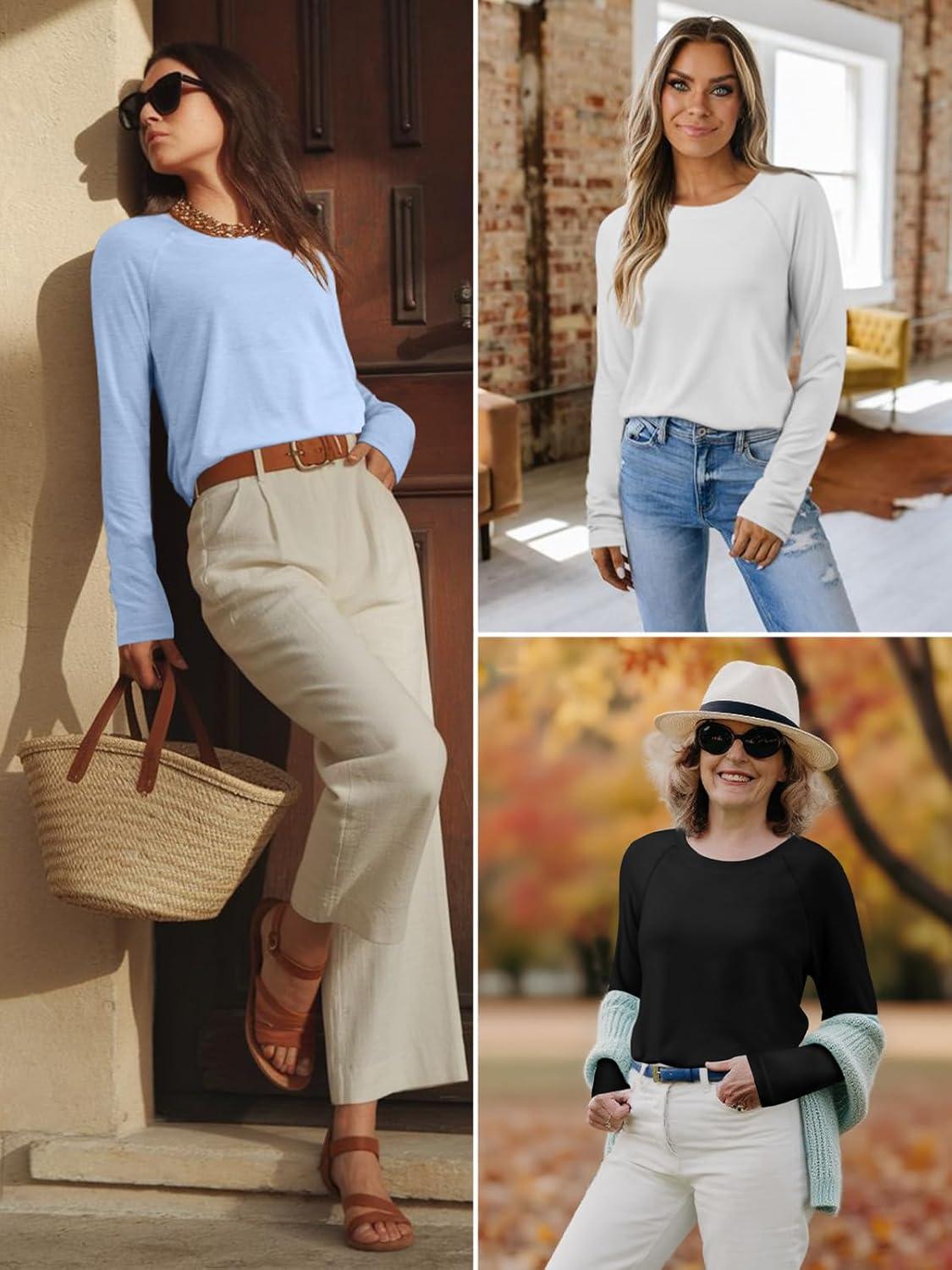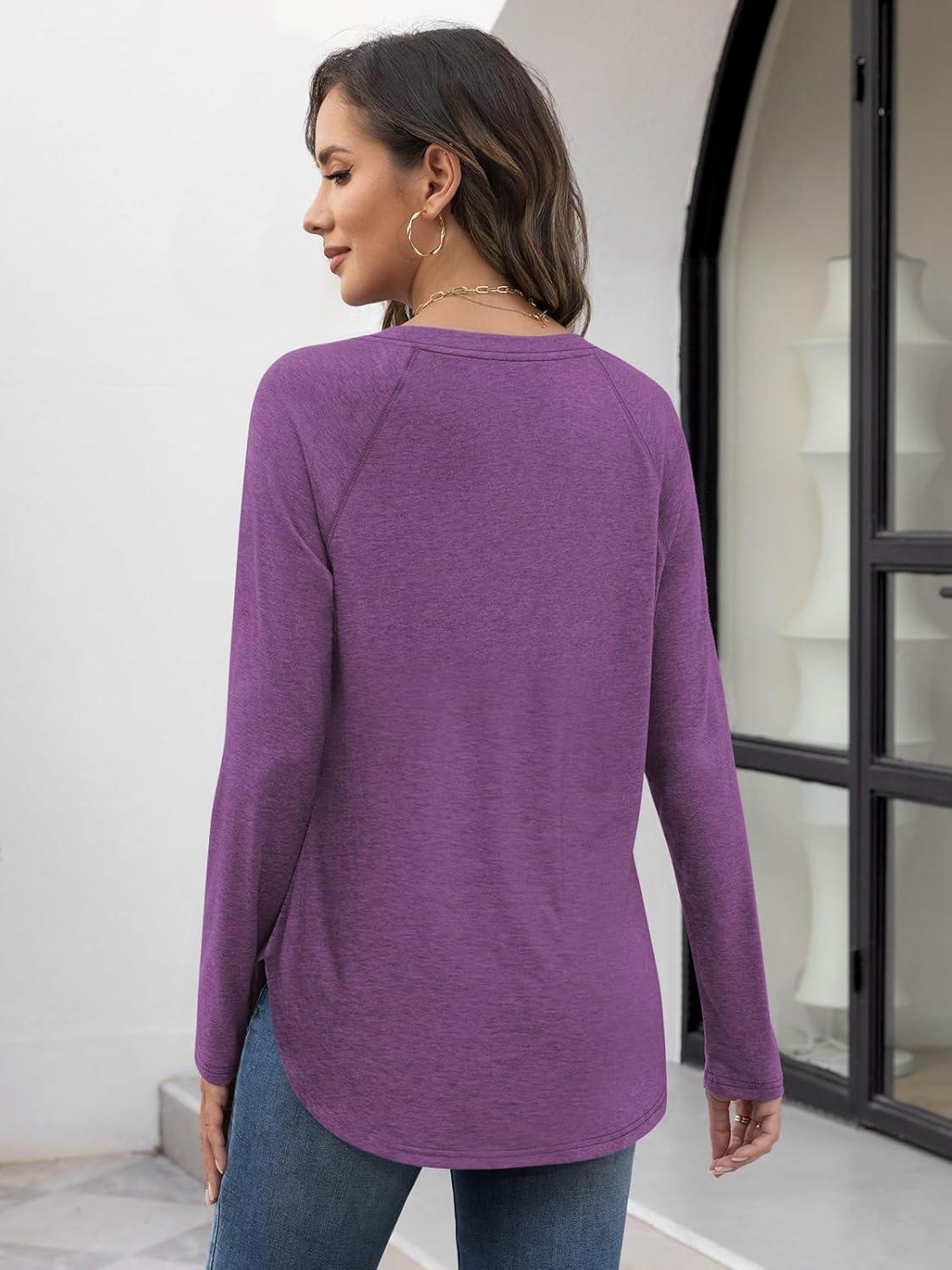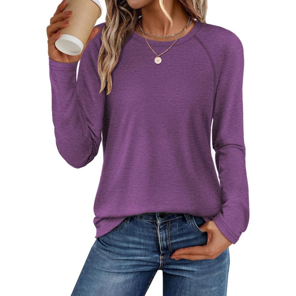 Get up to 50% off on ATHMILE Long Sleeve Shirts for Women Fall Outfit 2025 Fashion Casual T Shirt Round Neck Basic Loose Tunic Tops(Purple) styles during our spring sale event.