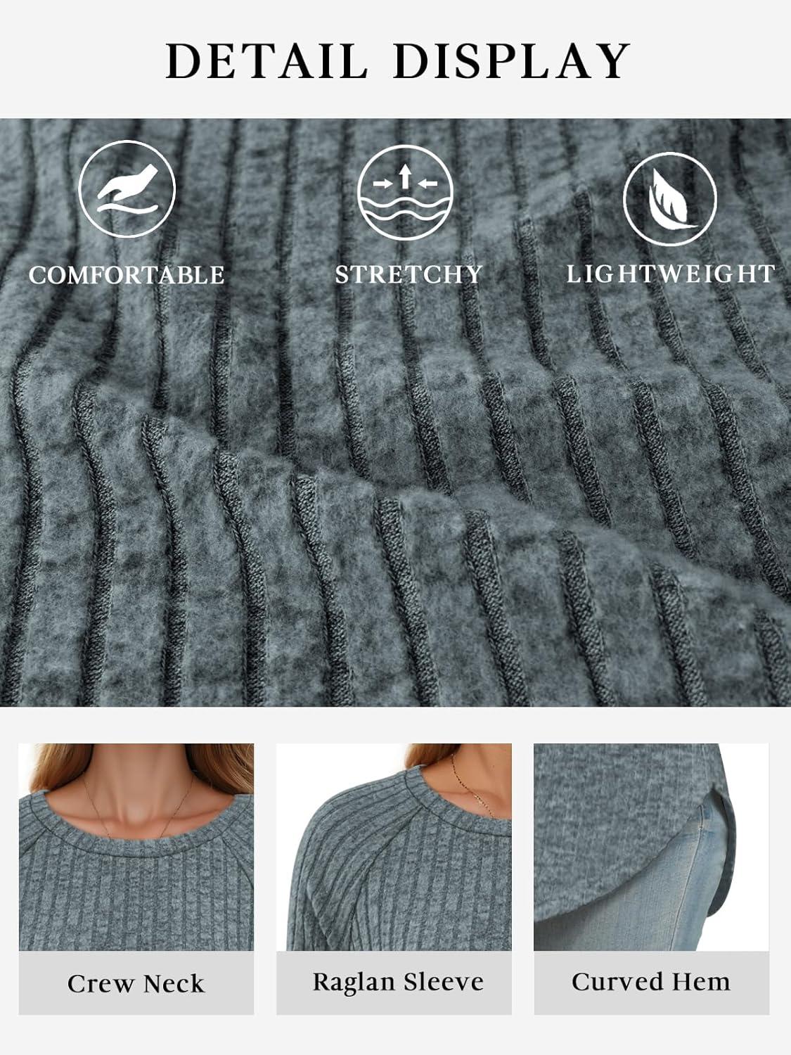 ATHMILE Long Sleeve Shirts for Women Tunic Tops Loose Fit Dressy Crew Neck Pullover Basic Sweaters 2025(Blue)