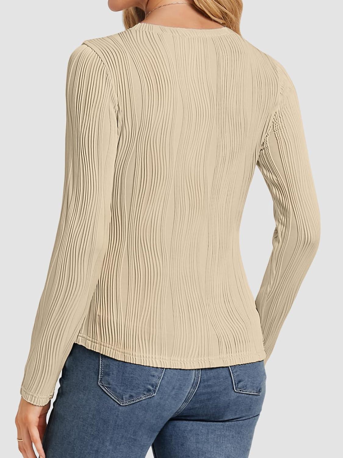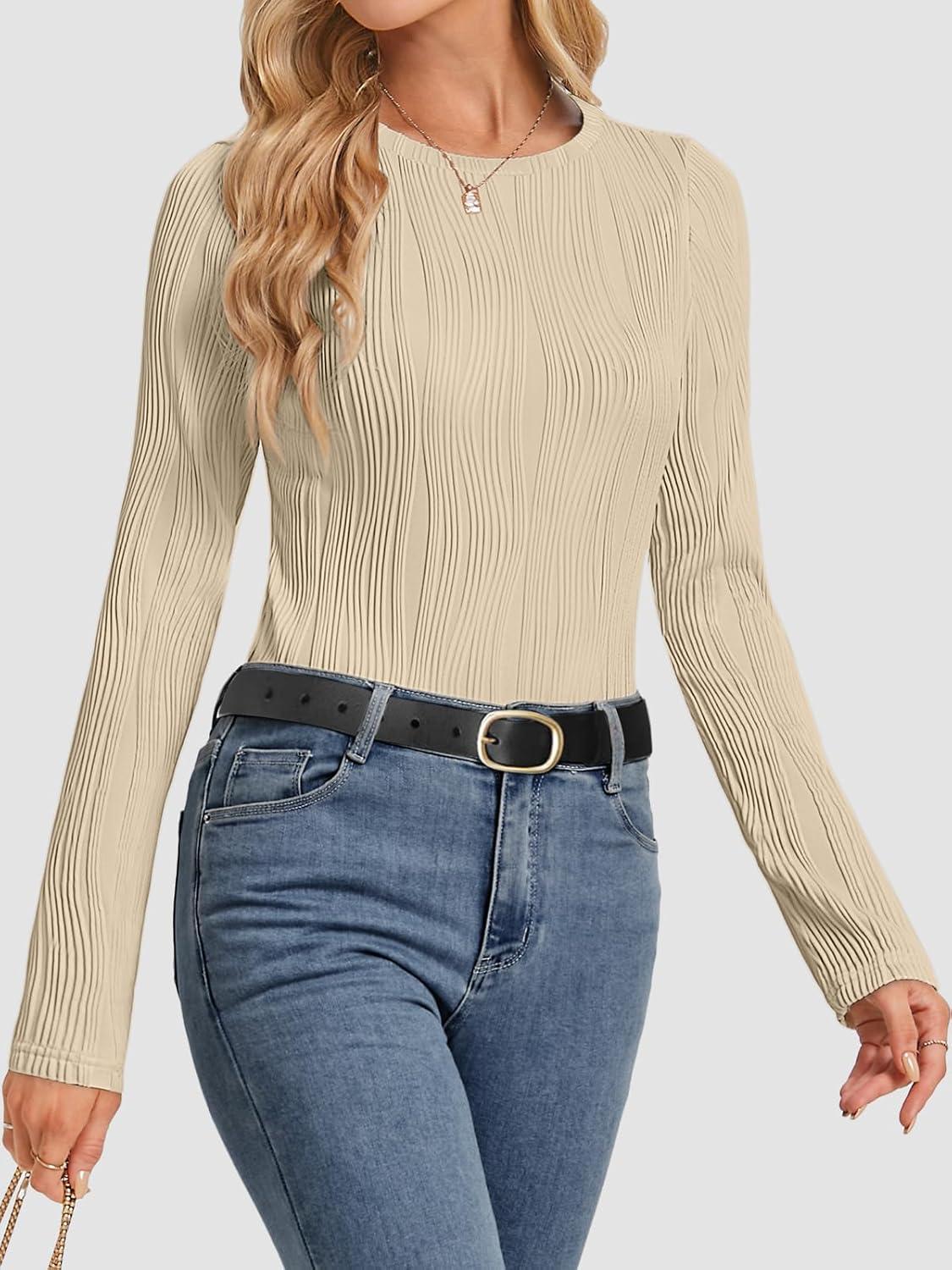 ATHMILE Long Sleeve Shirts for Women Work Business Casual Dressy Tops Trendy Textured Fitted Spring Fashion Clothes Blouse(Apricot)