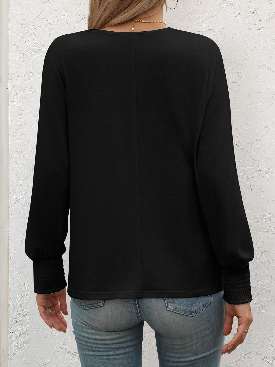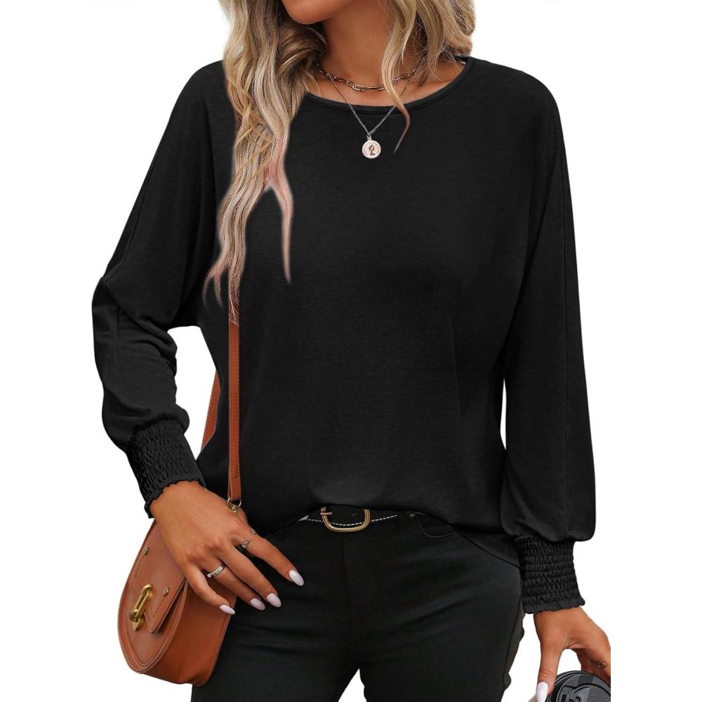 ATHMILE Long Sleeve Tops for Women 2025 Spring Fashion T Shirts for Women Crewneck Casual Loose Shirts Basic Tee(Black)