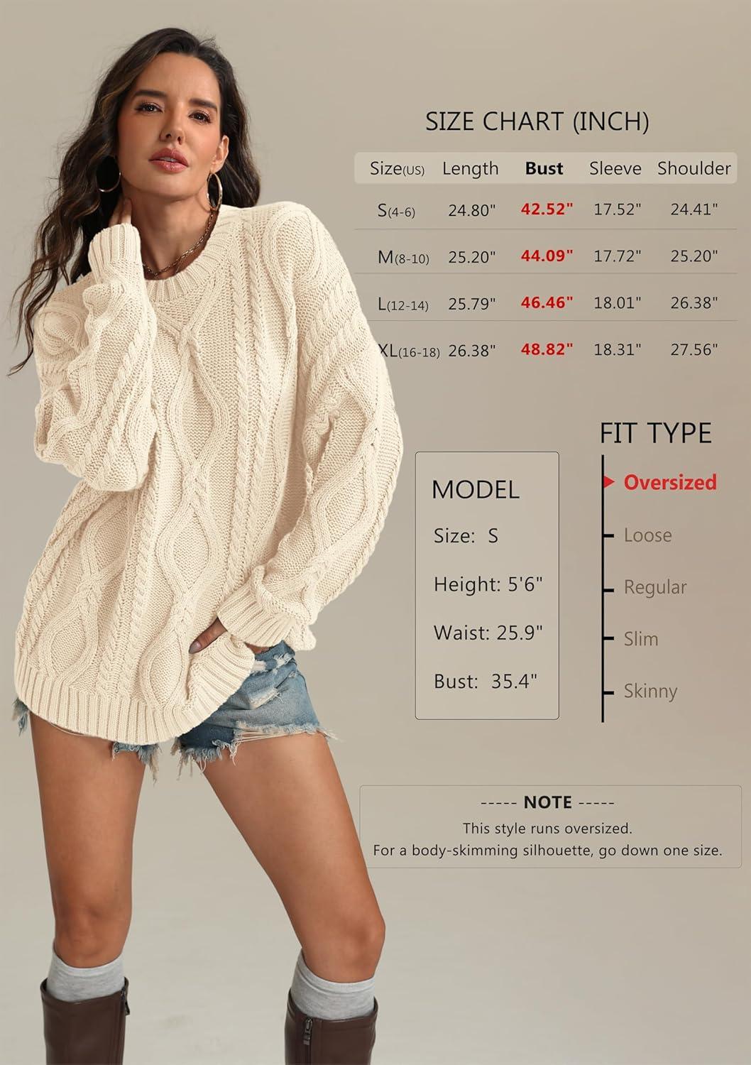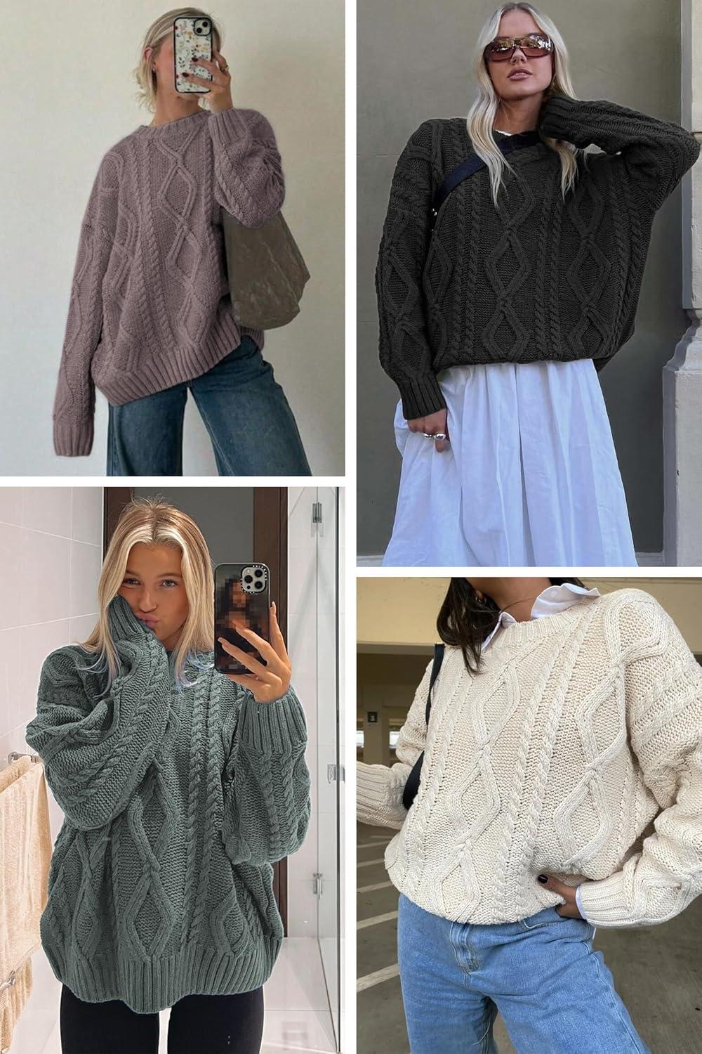 Save up to 40% on ATHMILE Oversized Cable Knit Sweaters for Women Fall Fashion Outfits Long Sleeve Loose Crewneck Winter Clothes 2025(Cream) styles during our end-of-season sale.