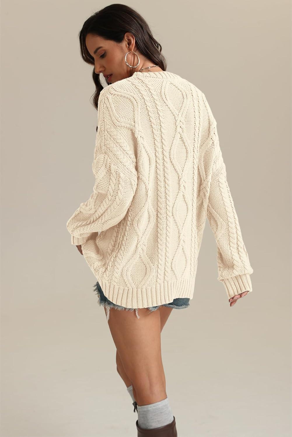 ATHMILE Oversized Cable Knit Sweaters for Women Fall Fashion Outfits Long Sleeve Loose Crewneck Winter Clothes 2025(Cream)