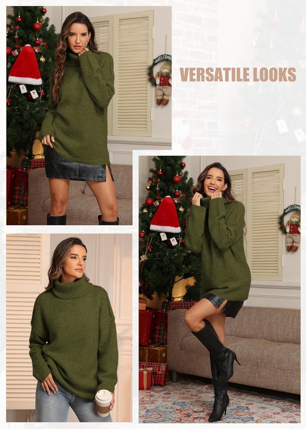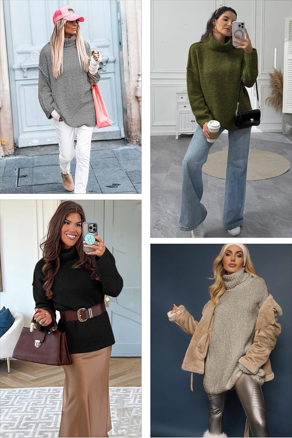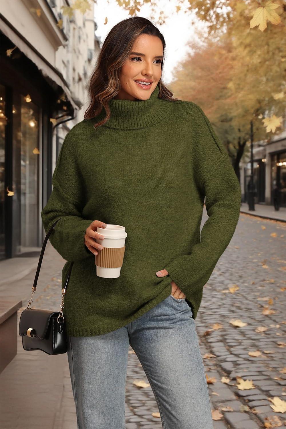 ATHMILE Oversized Chunky Sweaters for Women Fall Turtleneck Long Sleeve Knit Pullover Tops 2025 Winter Fashion Clothes(Army Green)