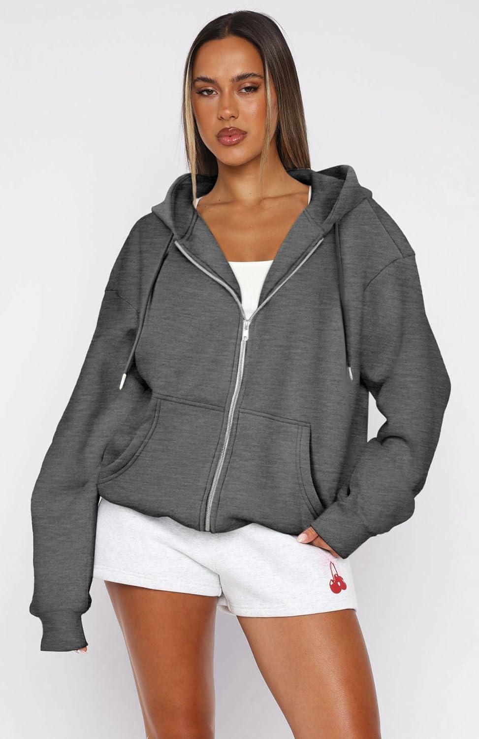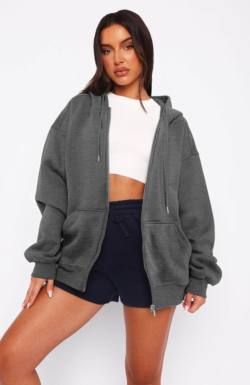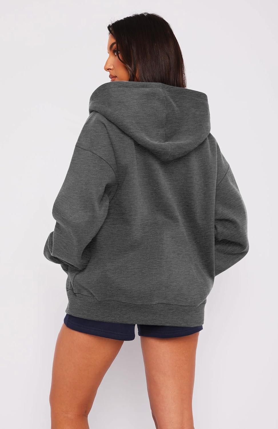 ATHMILE Oversized Hoodies for Women Fall Sweatshirts Zip Up Hoodie Casual Jackets Y2k Fashion Outfits Winter Clothes 2025(Dark Grey)