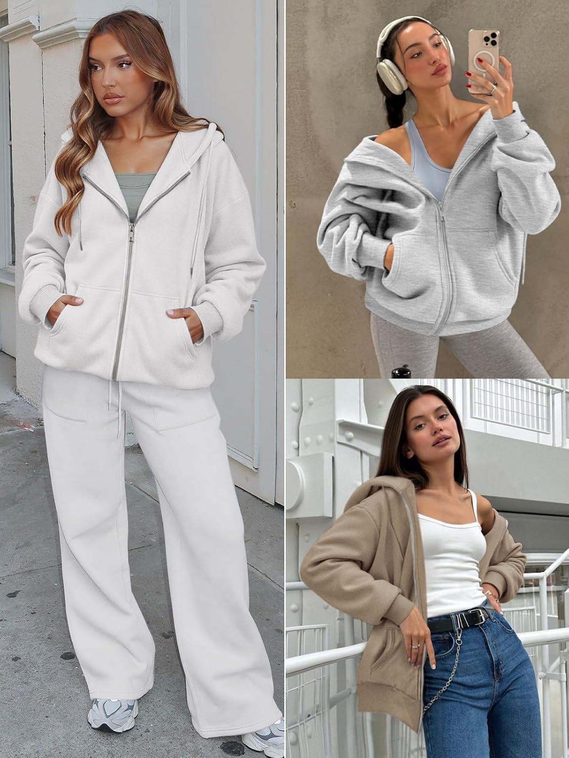 ATHMILE Oversized Hoodies for Women Fall Sweatshirts Zip Up Hoodie Casual Jackets Y2k Fashion Outfits Winter Clothes 2025(White)