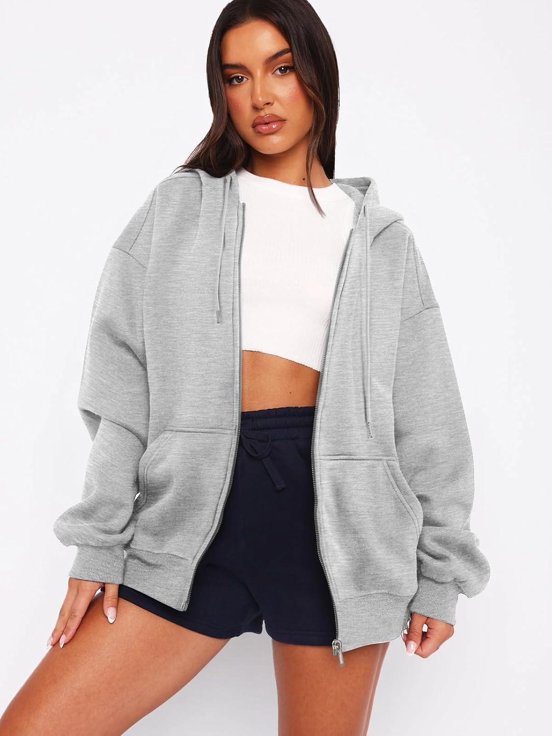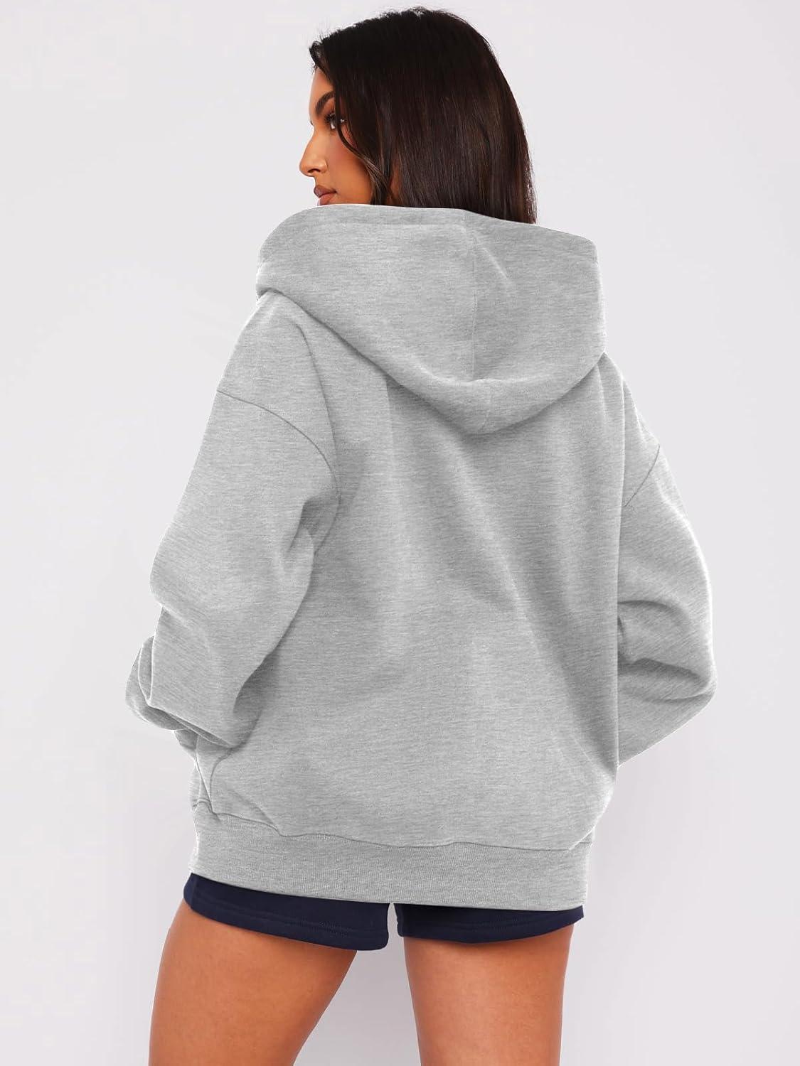 ATHMILE Oversized Hoodies for Women Fall Sweatshirts Zip Up Hoodie Casual Jackets Y2k Fashion Outfits Winter Clothes 2025(Grey)