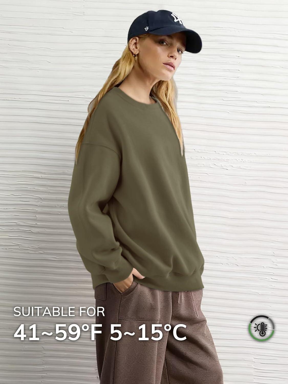 ATHMILE Oversized Sweatshirt for Women Crewneck Fleece Long Sleeve Pullover Hoodies Tops Fall Fashion Outfits Clothes 2025(Armygreen)