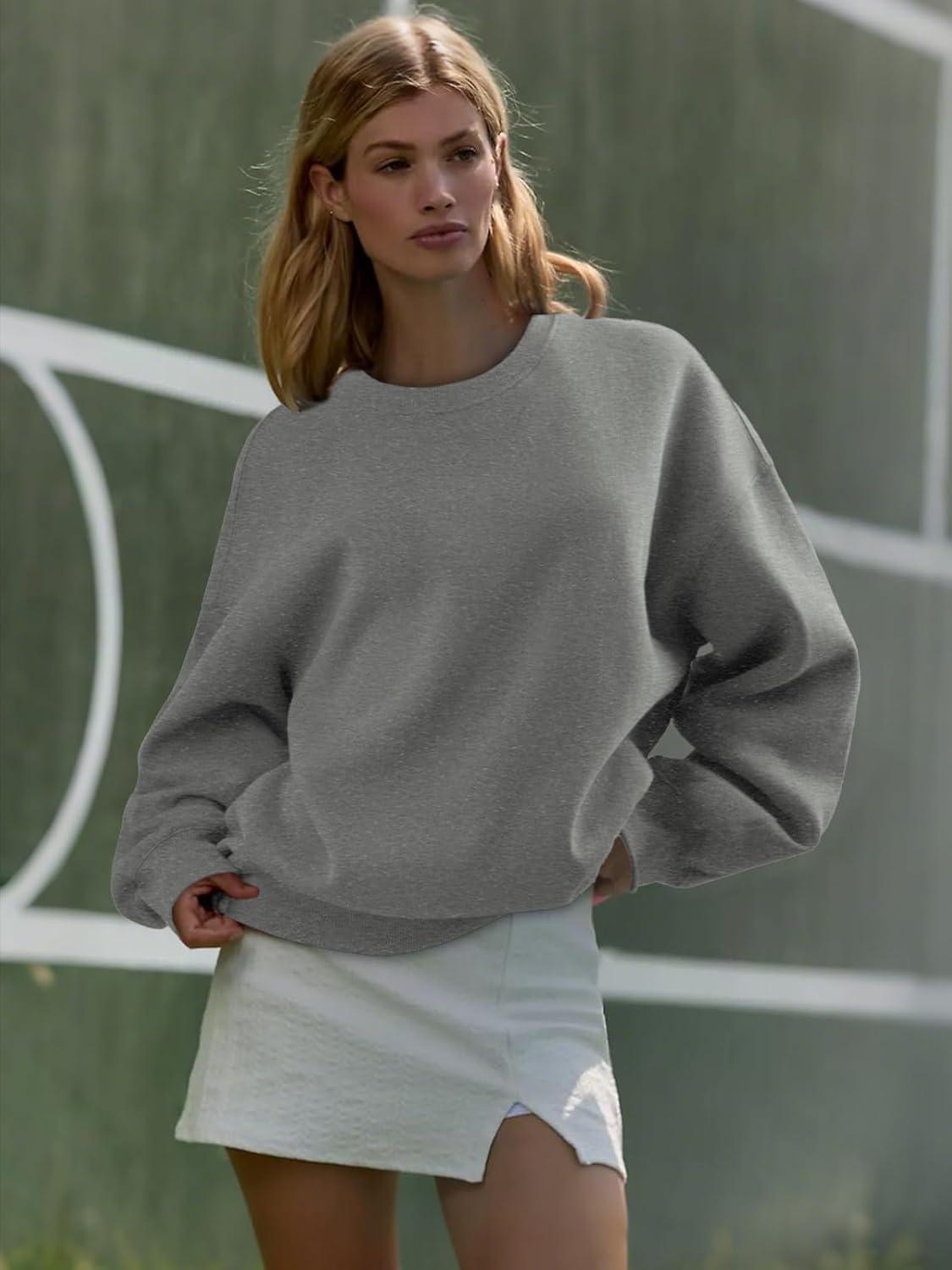 ATHMILE Oversized Sweatshirt for Women Crewneck Fleece Long Sleeve Pullover Hoodies Tops Fall Fashion Outfits Clothes 2025(Dark Grey)