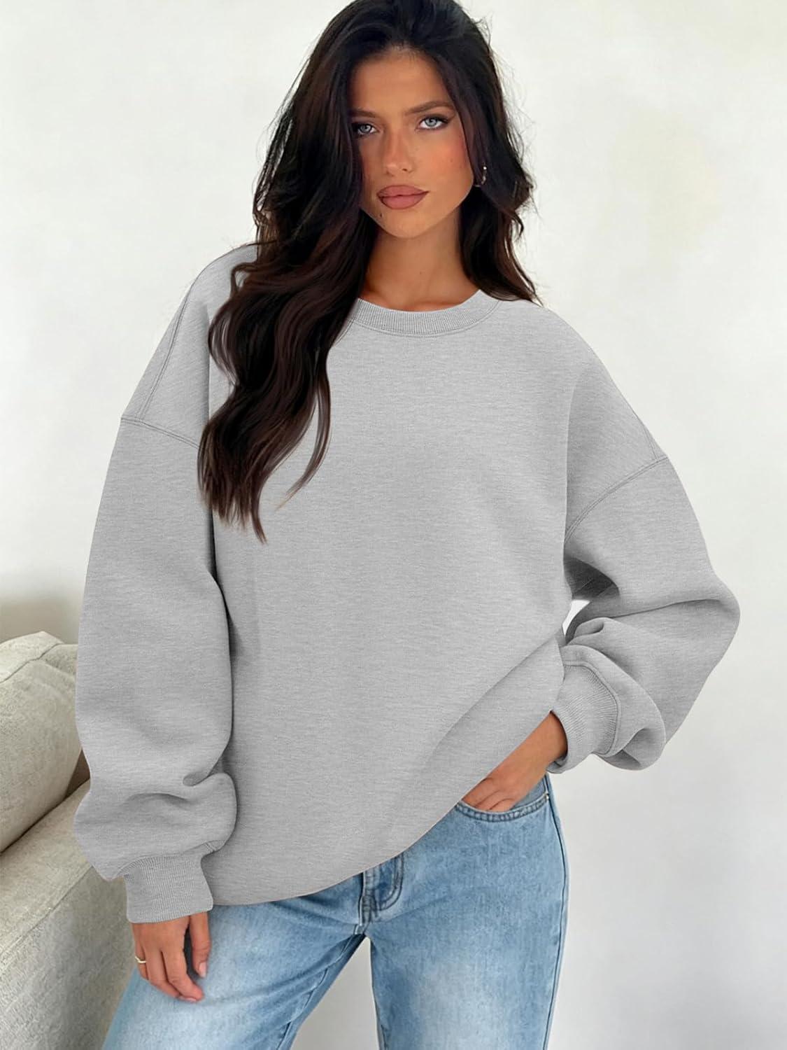 ATHMILE Oversized Sweatshirt for Women Fall Fashion Long Sleeve Hoodies Fleece Pullover Tops Y2K Clothes with Side Pockets(Grey)
