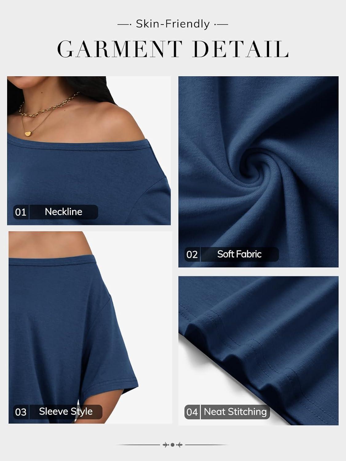 imageATHMILE Oversized TShirts for Womens Off The Shoulder Tops Short Sleeve Tees Summer 2025 Casual Spring Fashion ClothesBlue