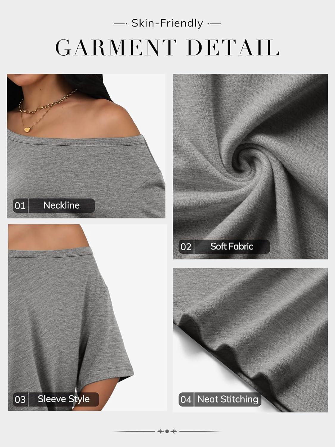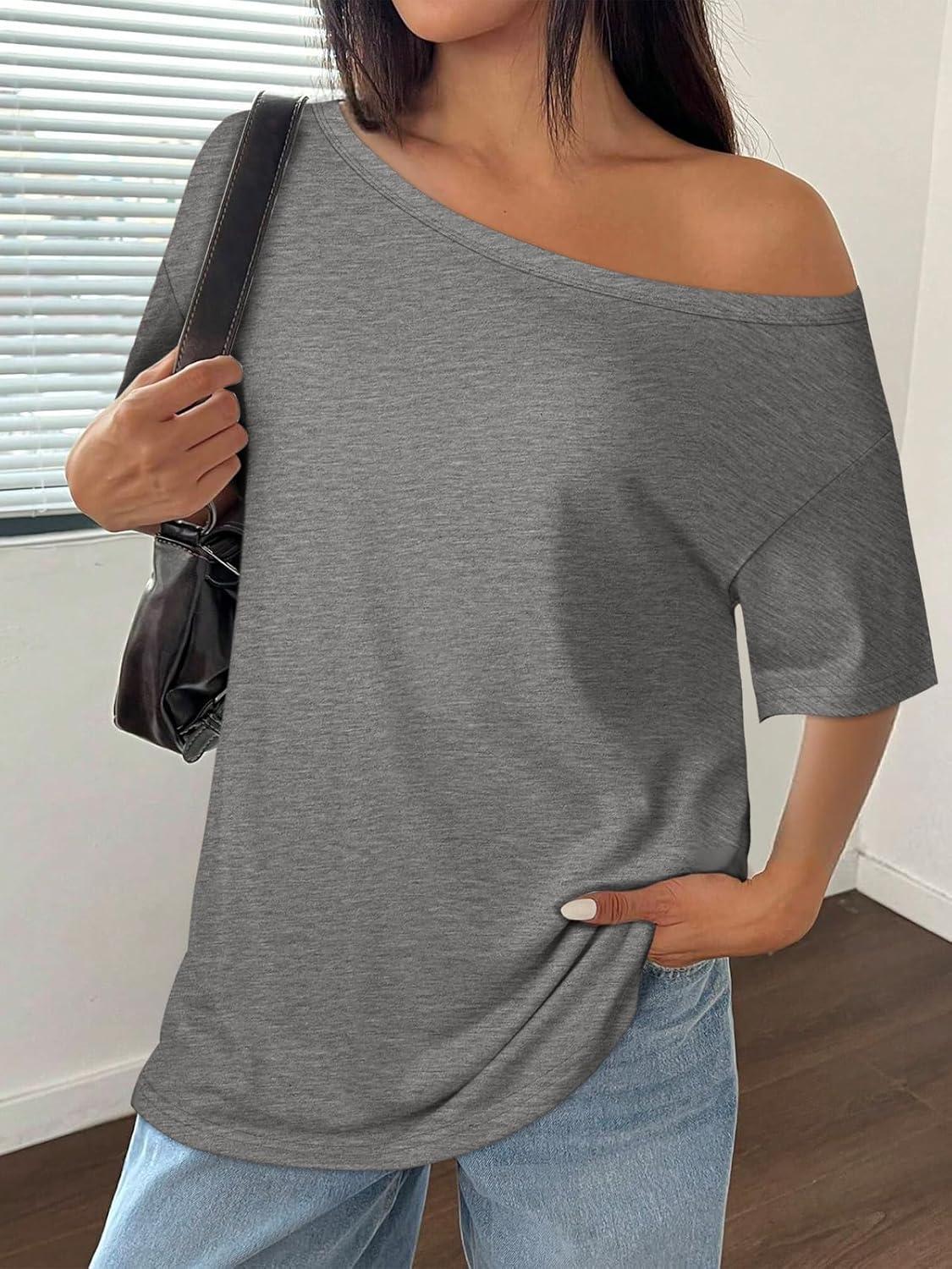 ATHMILE Oversized T-Shirts for Womens Off The Shoulder Tops Short Sleeve Tees Summer 2025 Casual Spring Fashion Clothes(Darkgrey)