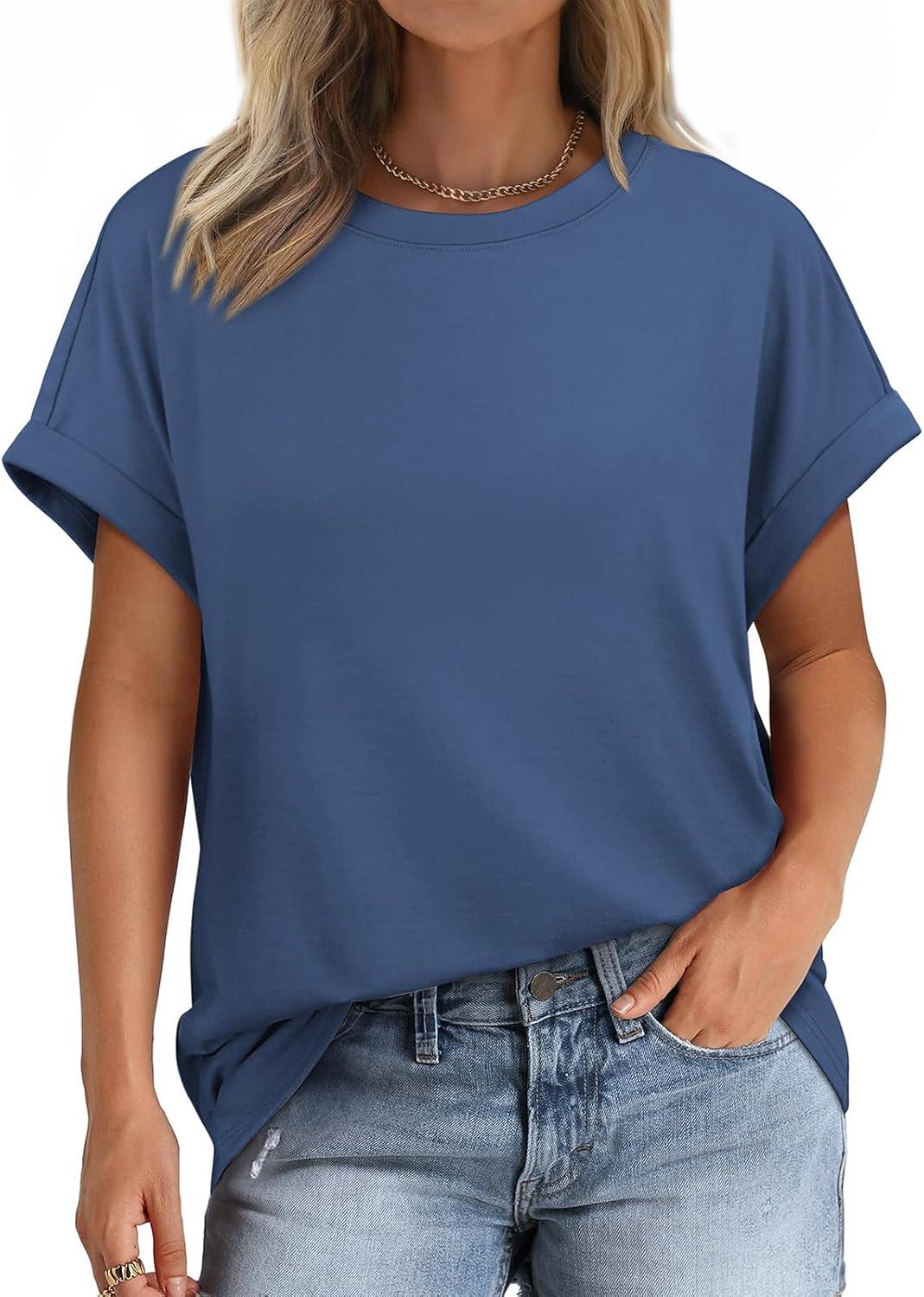 ATHMILE Oversized Tshirts for Women Business Casual Shirts Loose Fit Short Sleeve Tops Summer Clothes Fashion Outfit 2025(Blue)