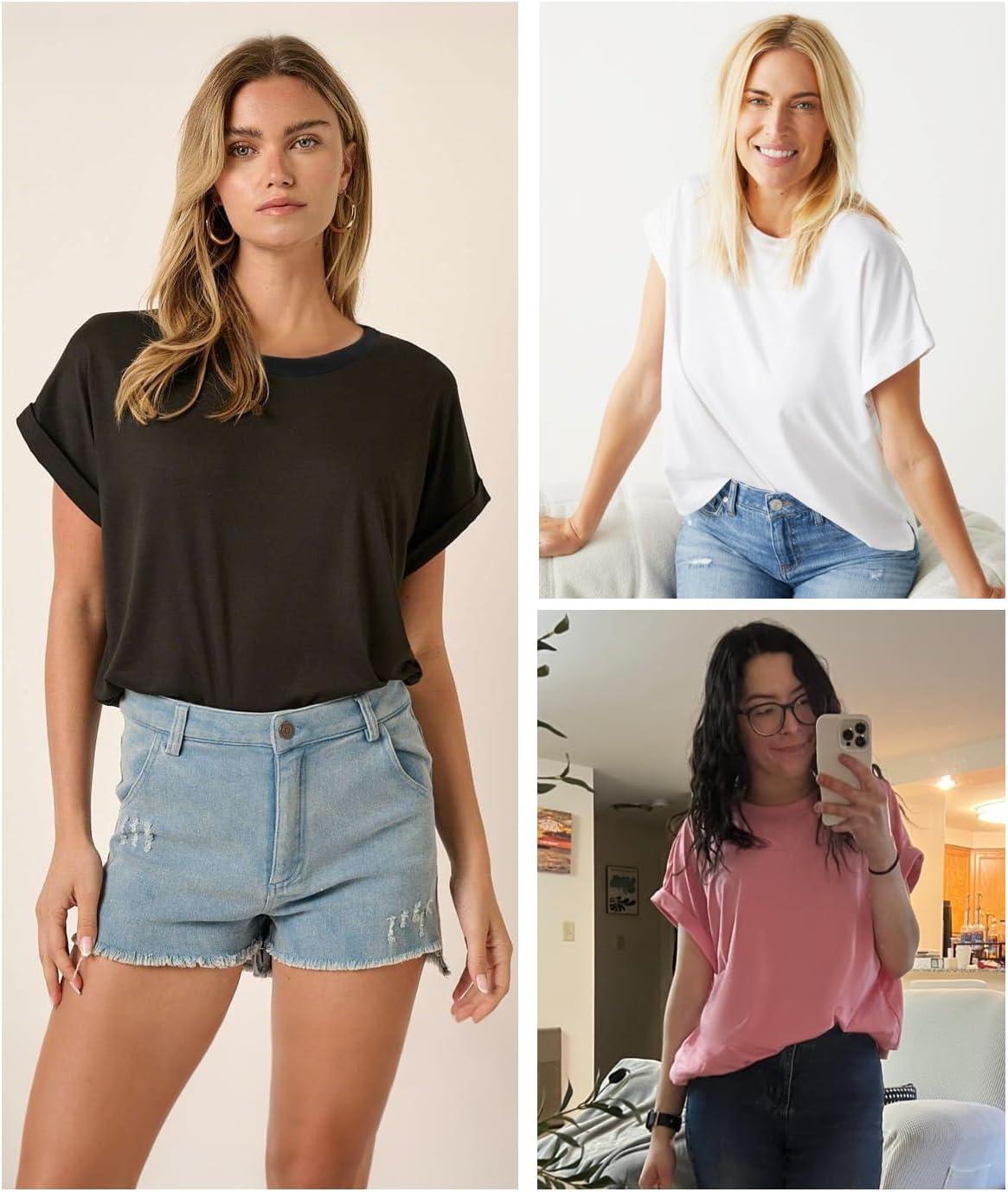 imageATHMILE Oversized Tshirts for Women Business Casual Shirts Loose Fit Short Sleeve Tops Summer Clothes Fashion Outfit 2025Blue