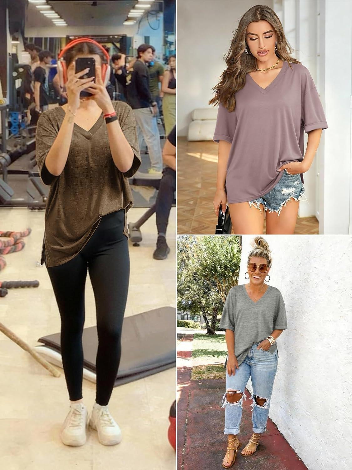 ATHMILE Oversized Tshirts for Women Summer 2026 V Neck Casual Workout Plus Size Tops Spring Fashion Cute Basic Trendy Outfits(Khaki)