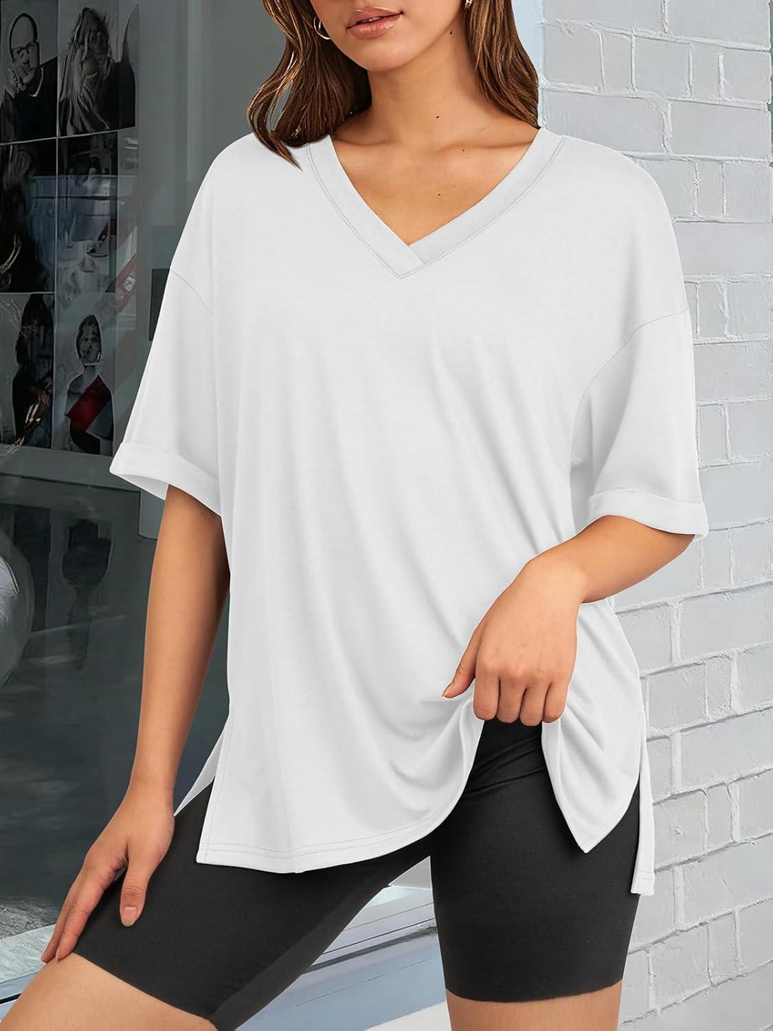 ATHMILE Oversized Tshirts for Women Summer 2026 V Neck Casual Workout Plus Size Tops Spring Fashion Cute Basic Trendy Outfits(White)