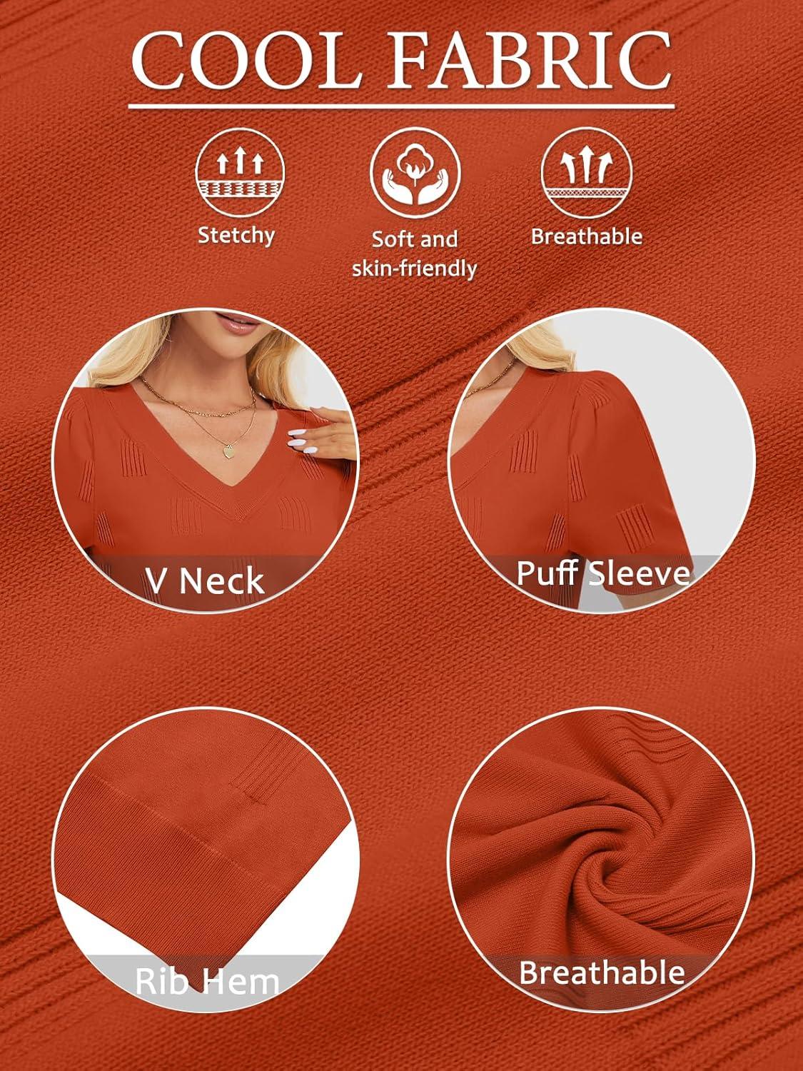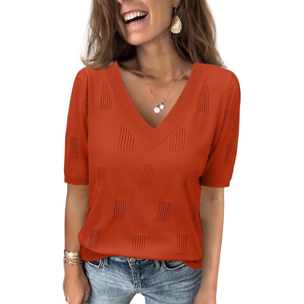 Get your hands on our exclusive ATHMILE Summer Tops for Women 2025 Short Sleeve V Neck Sweaters Dressy Casual Blouses Lightweight Thin Knit Fashion Shirts(Rust) collection, now at a discounted price.