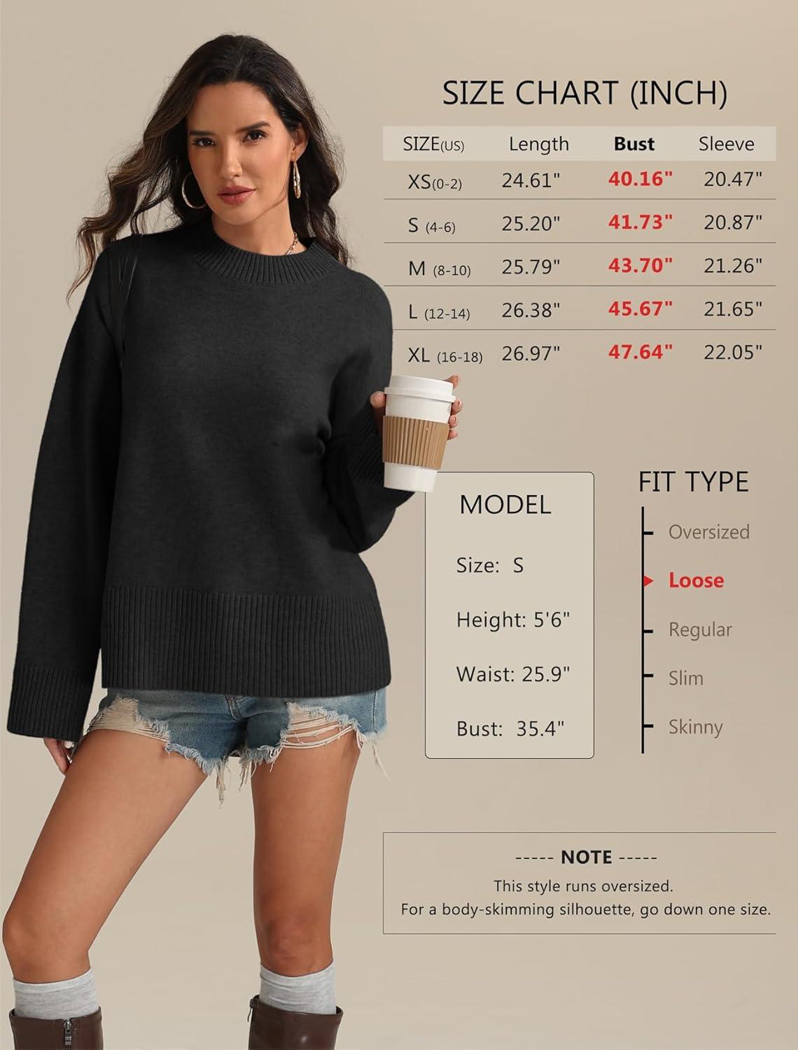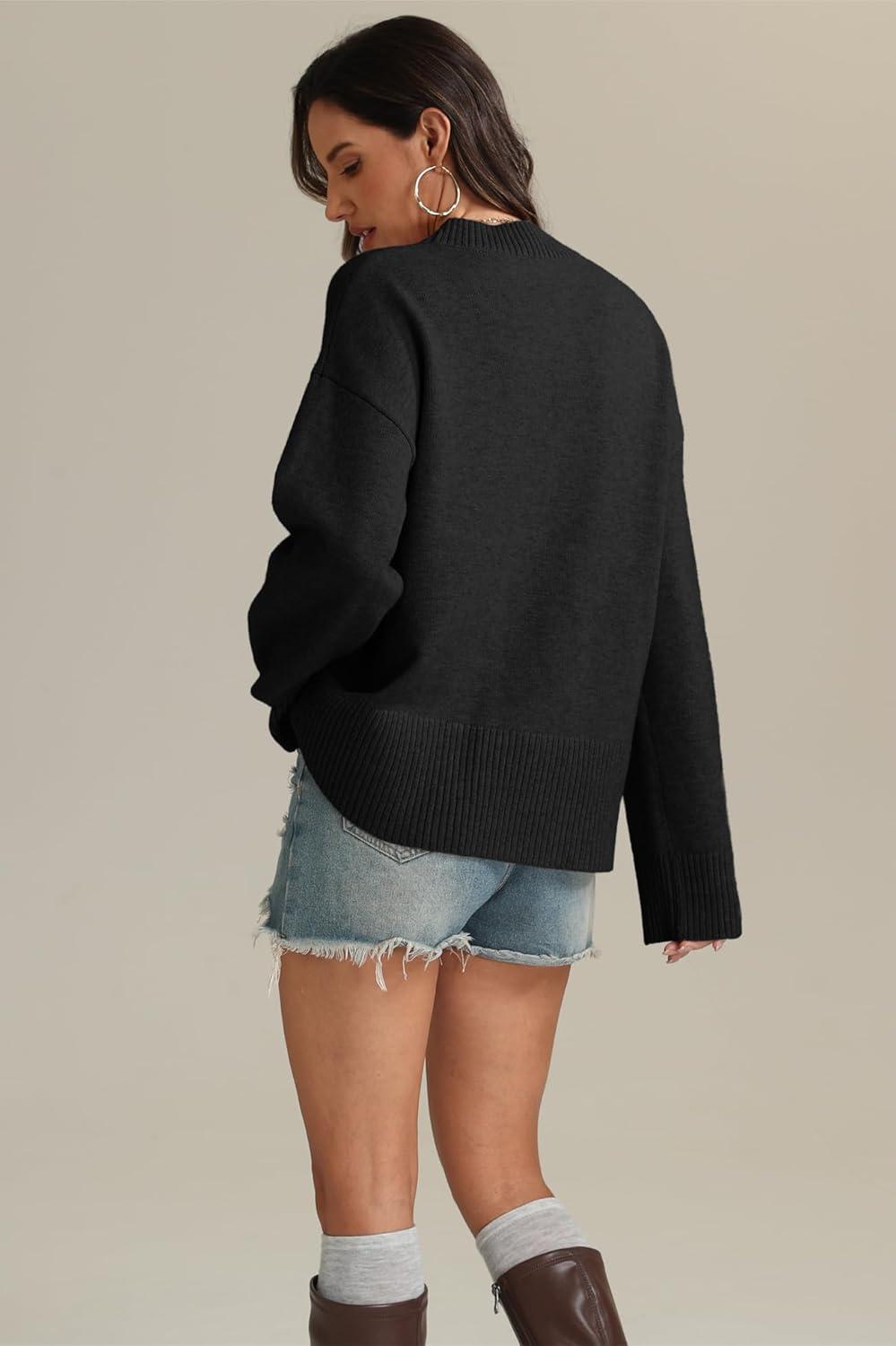 ATHMILE Sweaters for Women 2025 Fall Fashion Outfits Long Sleeve Loose Casual Crewneck Ribbed Knit Pullover Winter Clothes(Black)