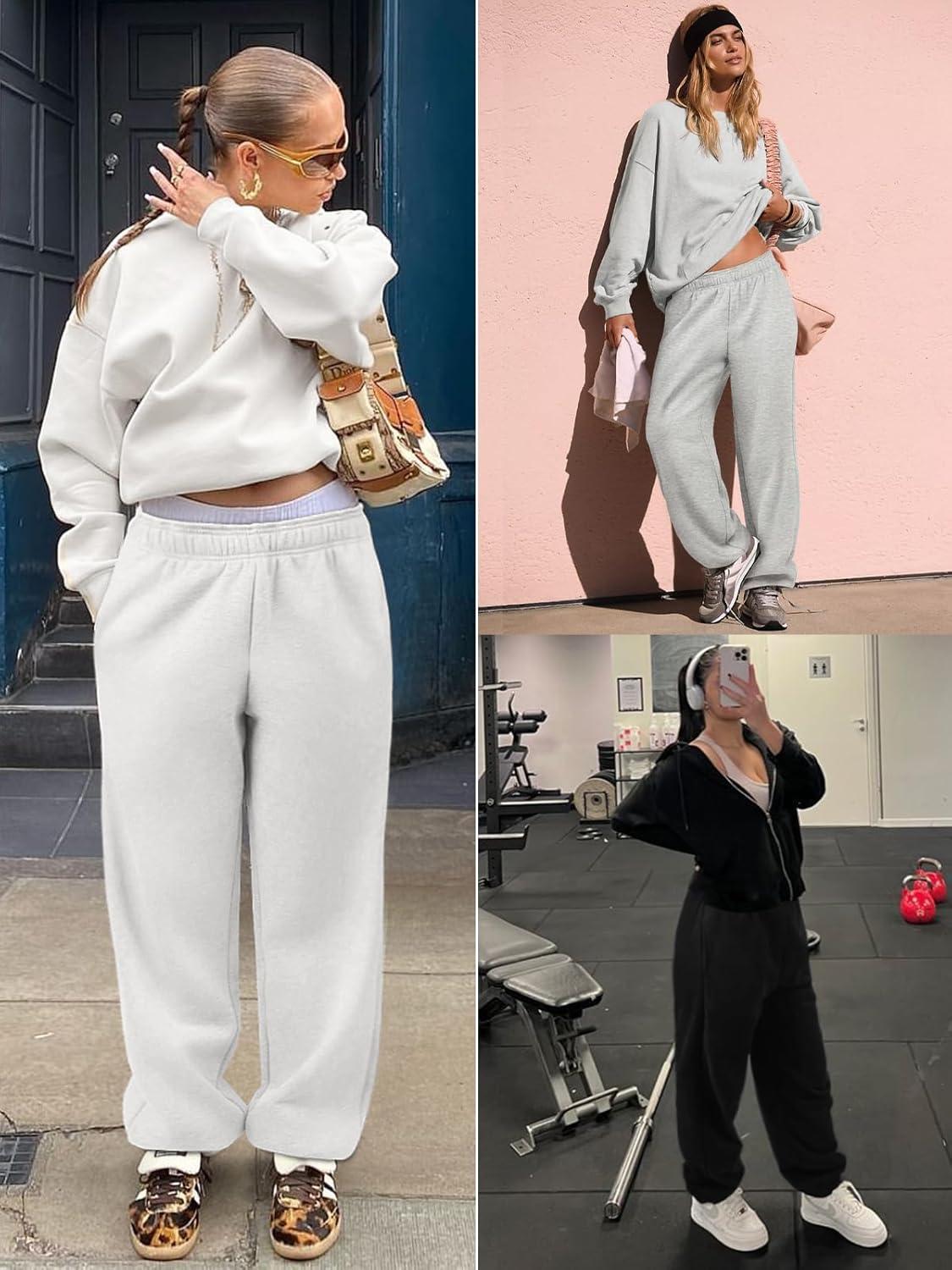 ATHMILE Sweatpants Women Baggy Lounge Pants Workout Gym Active High Waisted Comfy Joggers for Women Fall Clothes 2025(Fleece-darkgrey)
