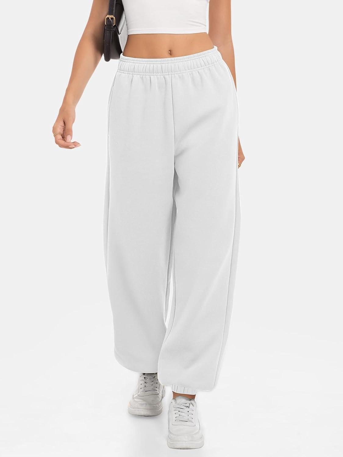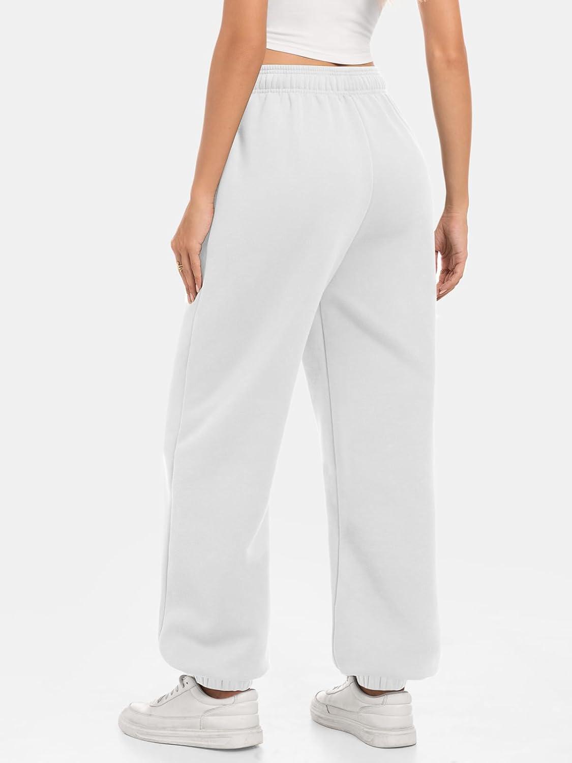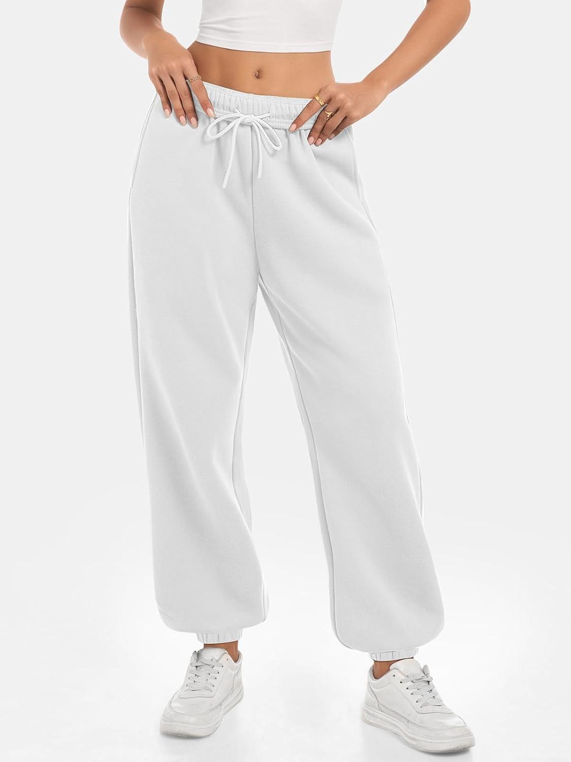 ATHMILE Sweatpants Women Baggy Lounge Pants Workout Gym Active High Waisted Comfy Joggers for Women Fall Clothes 2025(Fleece-white)
