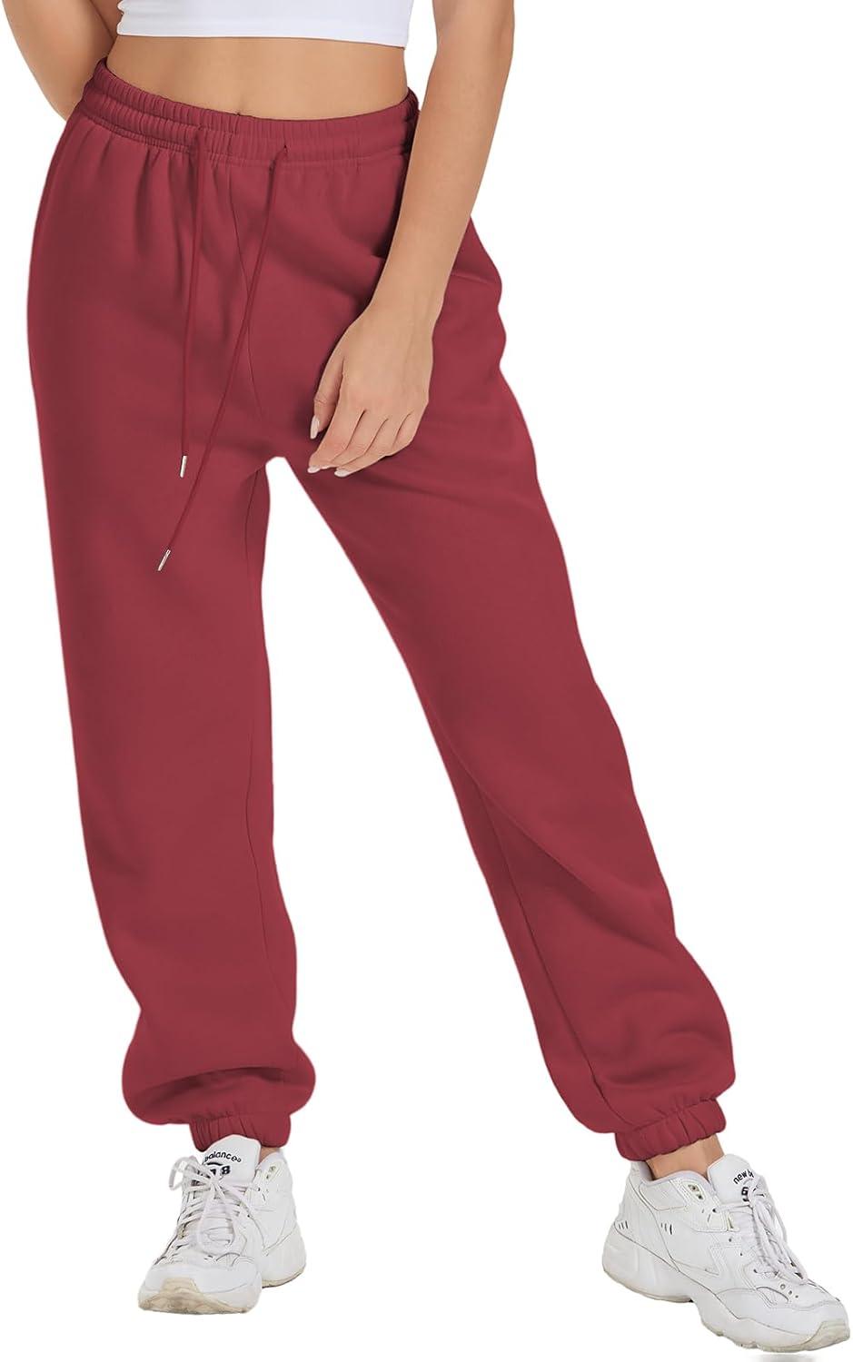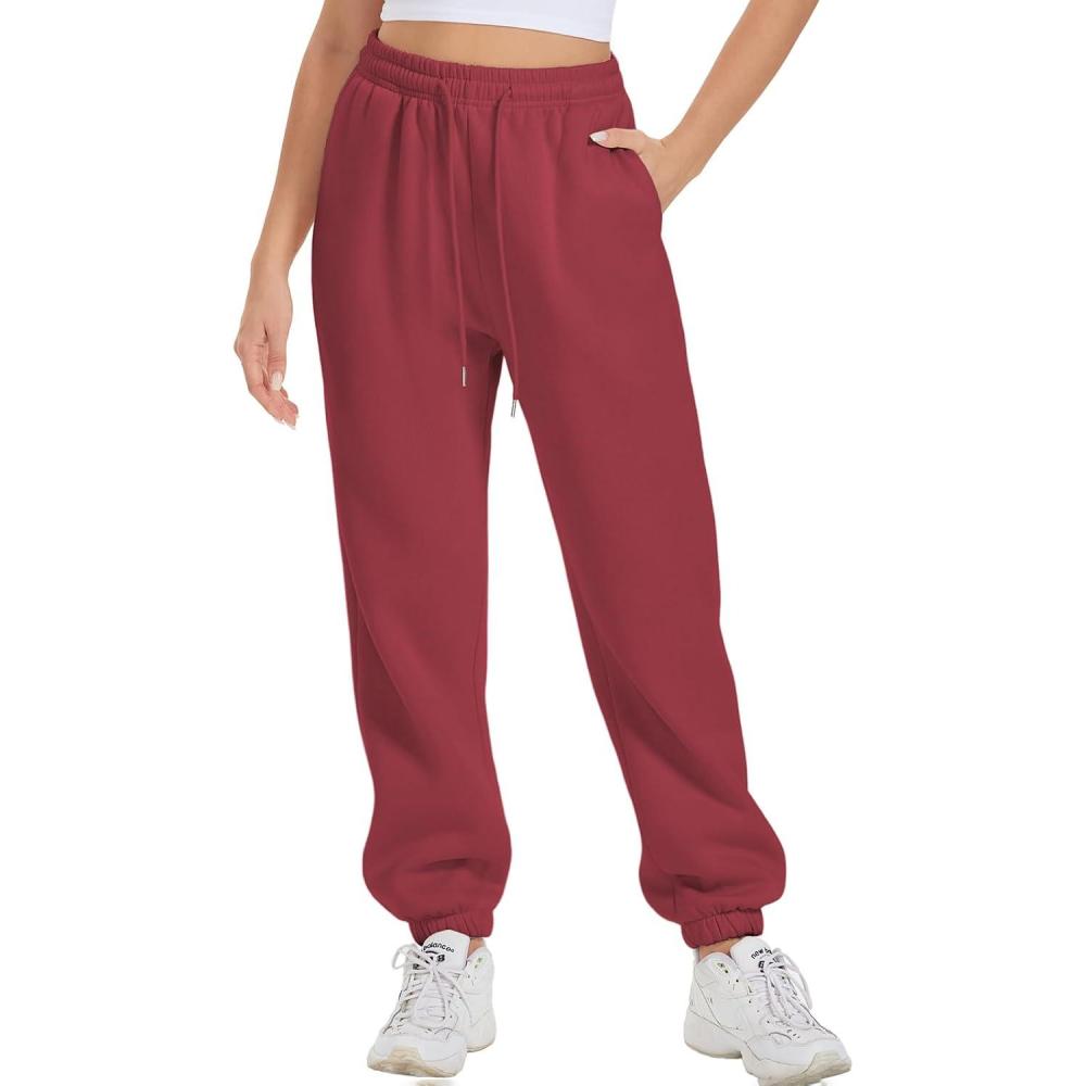 ATHMILE Sweatpants Women Fall Fashion Baggy High Waisted Sweat Pants Winter Fleece Lined Lounge Joggers with Pockets 2025(Wine Red)
