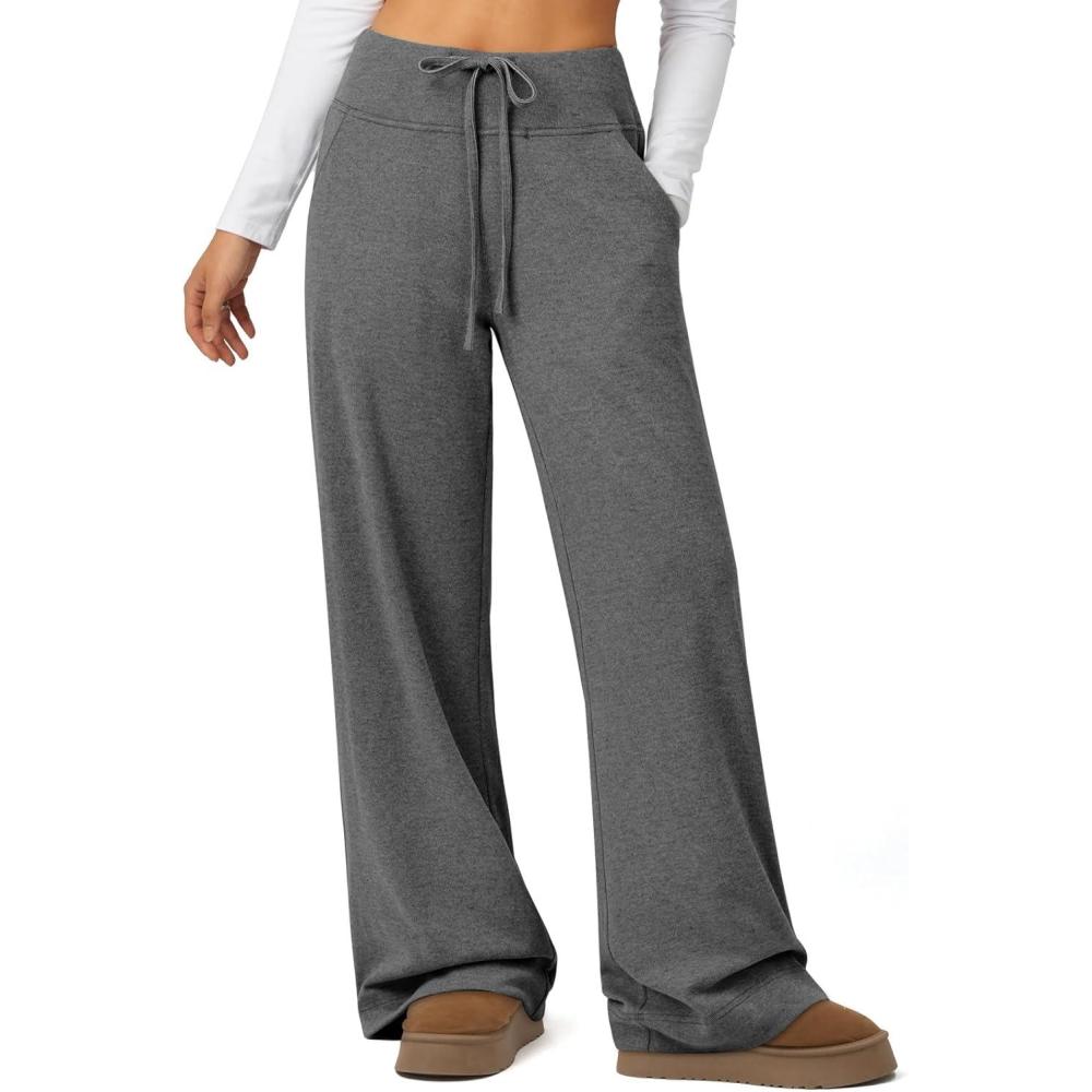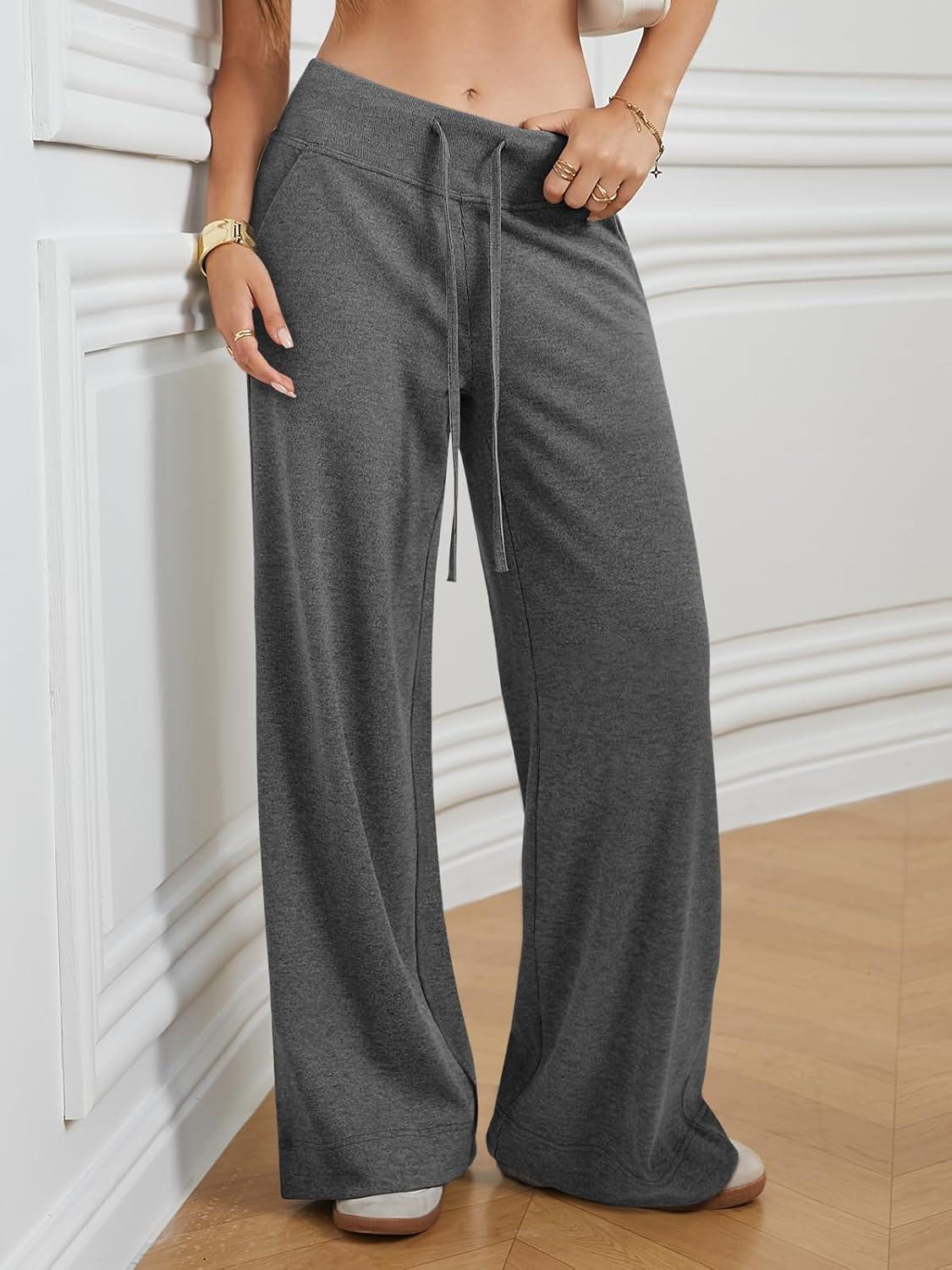 ATHMILE Sweatpants Women Fall Outfits Wide Leg Baggy Pants High-Waisted Drawstring Sweat Pants Fashion Joggers 2025(Grey)