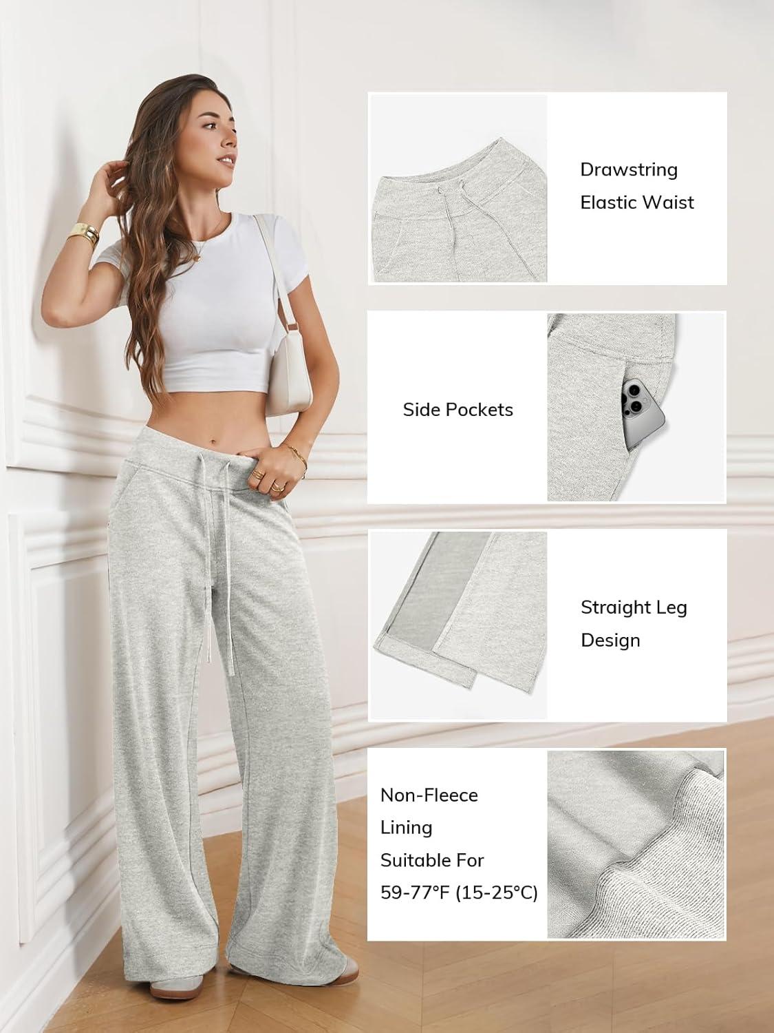 ATHMILE Sweatpants Women Fall Outfits Wide Leg Baggy Pants High-Waisted Drawstring Sweat Pants Fashion Joggers with Pocket(Light Grey)