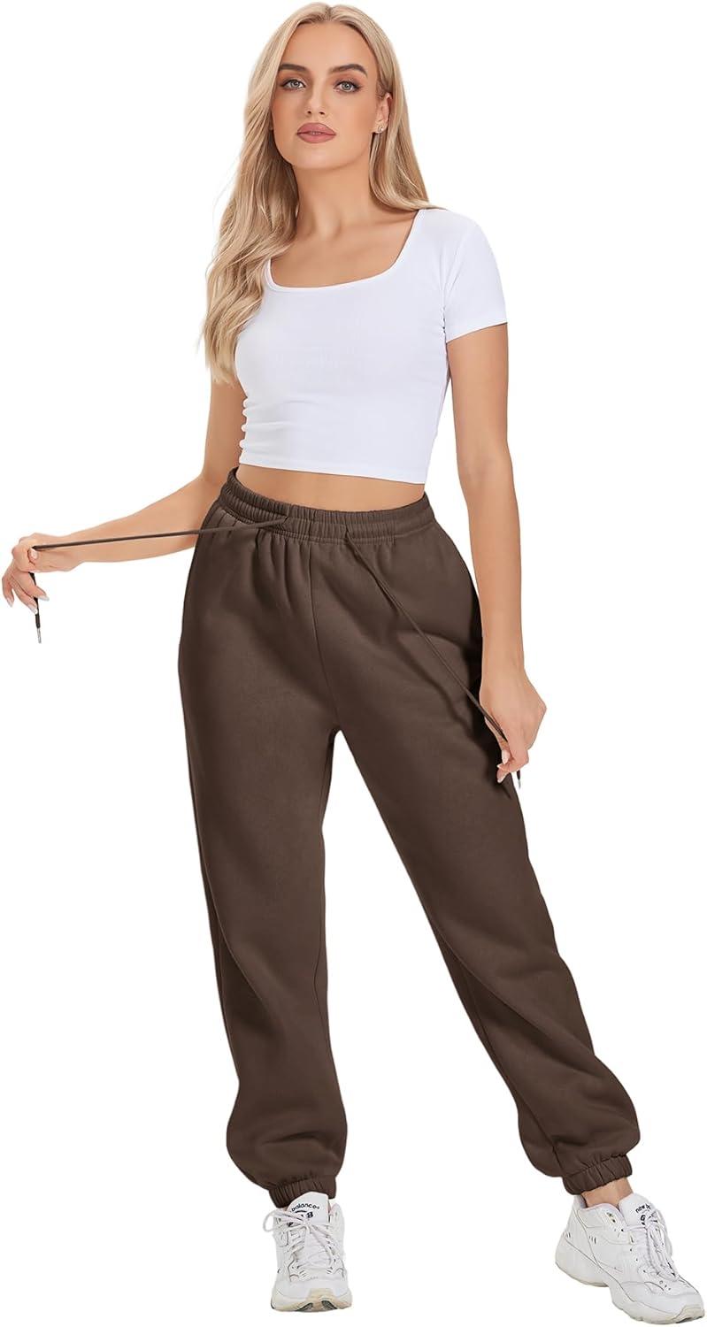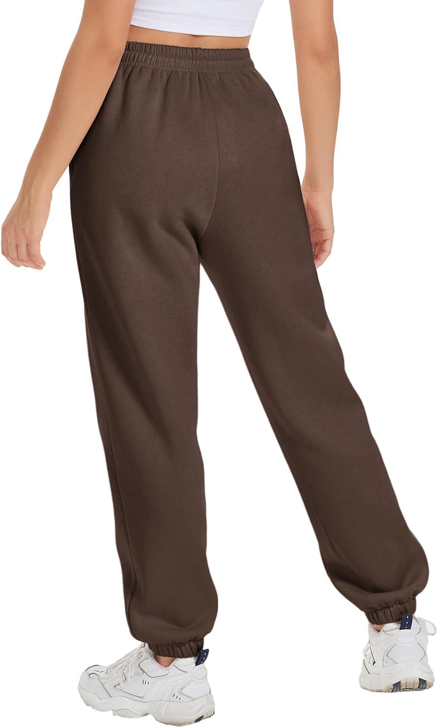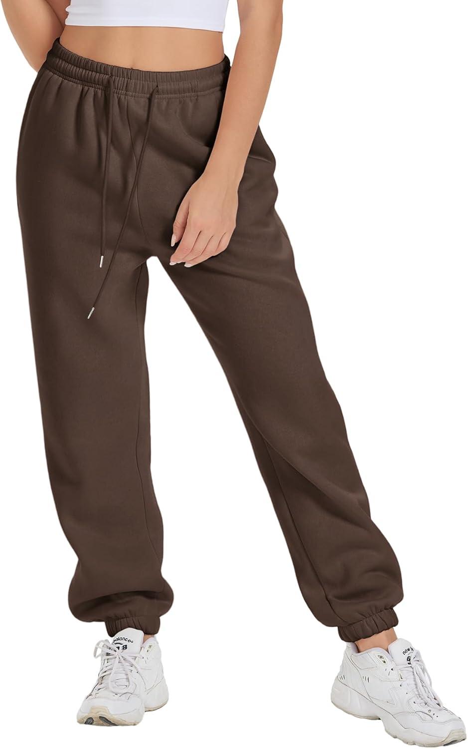ATHMILE Sweatpants Women Fleece Pockets Winter Fall Fashion Baggy Lounge Pants Joggers(Brown)