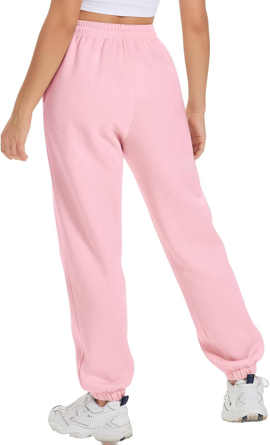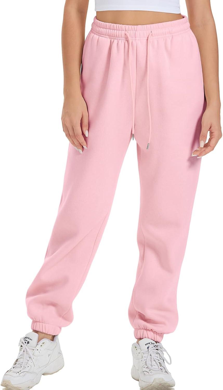 ATHMILE Sweatpants Women Fleece Pockets Winter Fall Fashion Baggy Lounge Pants Joggers(Pink)