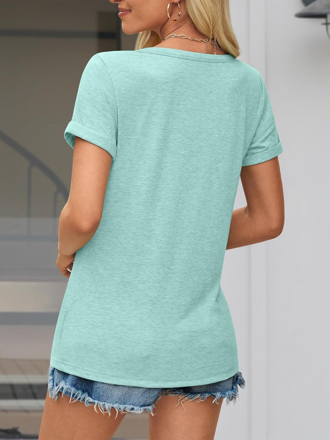 ATHMILE T Shirts Short Sleeve Scoop Neck Tees for Women Fashion Tops Trendy Casual Summer Outfits Clothes 2025(Aqua)