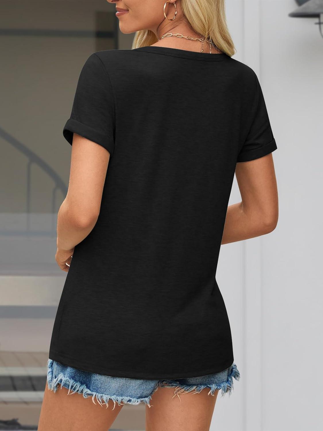 ATHMILE T Shirts Short Sleeve Scoop Neck Tees for Women Fashion Tops Trendy Casual Summer Outfits Clothes 2025(Black)