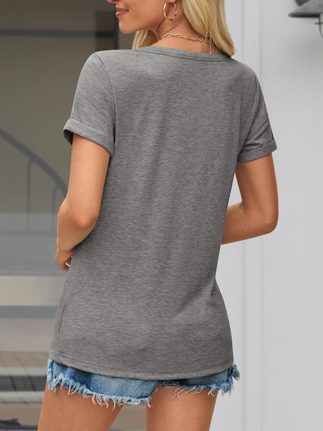 ATHMILE T Shirts Short Sleeve Scoop Neck Tees for Women Fashion Tops Trendy Casual Summer Outfits Clothes 2025(Grey)