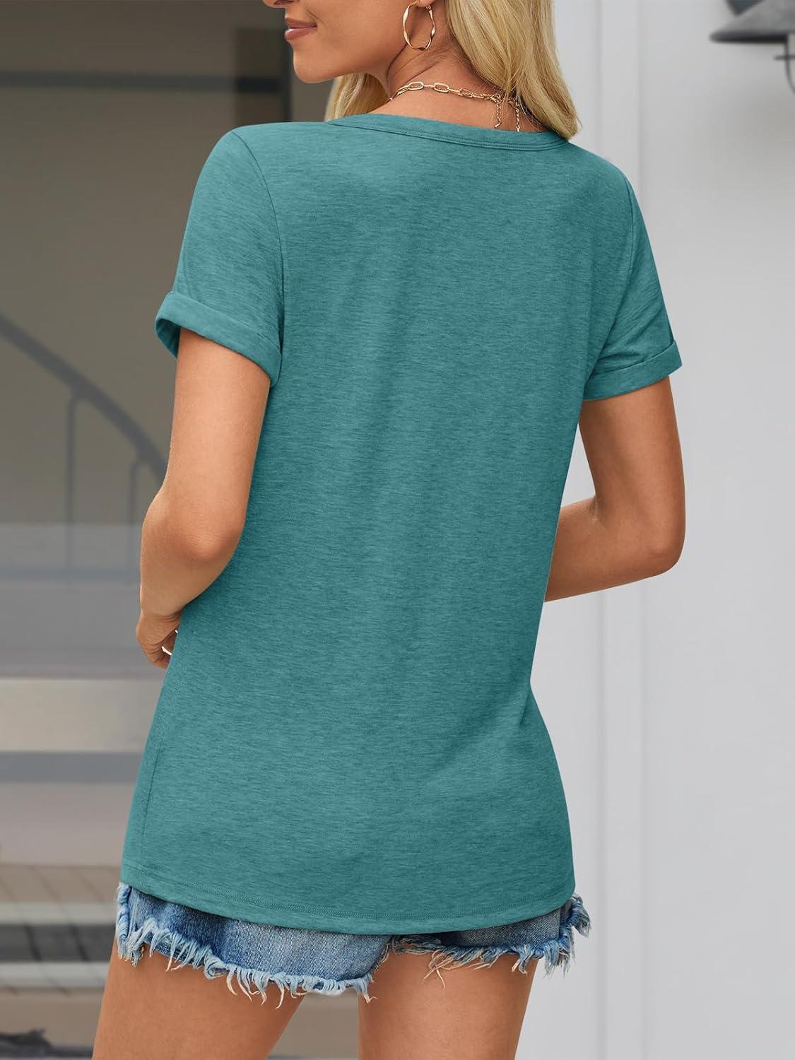 ATHMILE T Shirts Short Sleeve Scoop Neck Tees for Women Fashion Tops Trendy Casual Summer Outfits Clothes 2025(Lakeblue)