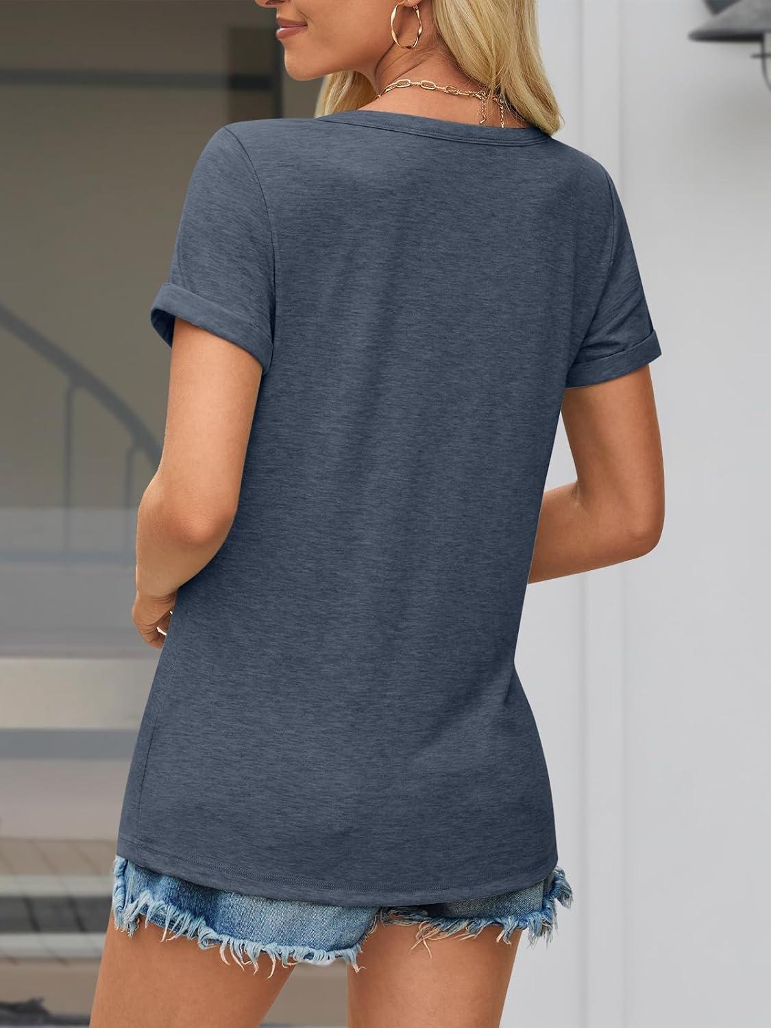 ATHMILE T Shirts Short Sleeve Scoop Neck Tees for Women Fashion Tops Trendy Casual Summer Outfits Clothes 2025(Navy)