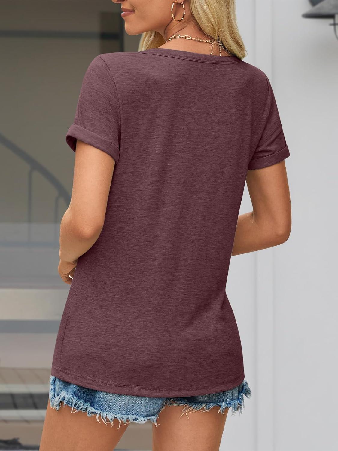 ATHMILE T Shirts Short Sleeve Scoop Neck Tees for Women Fashion Tops Trendy Casual Summer Outfits Clothes 2025(Winered)