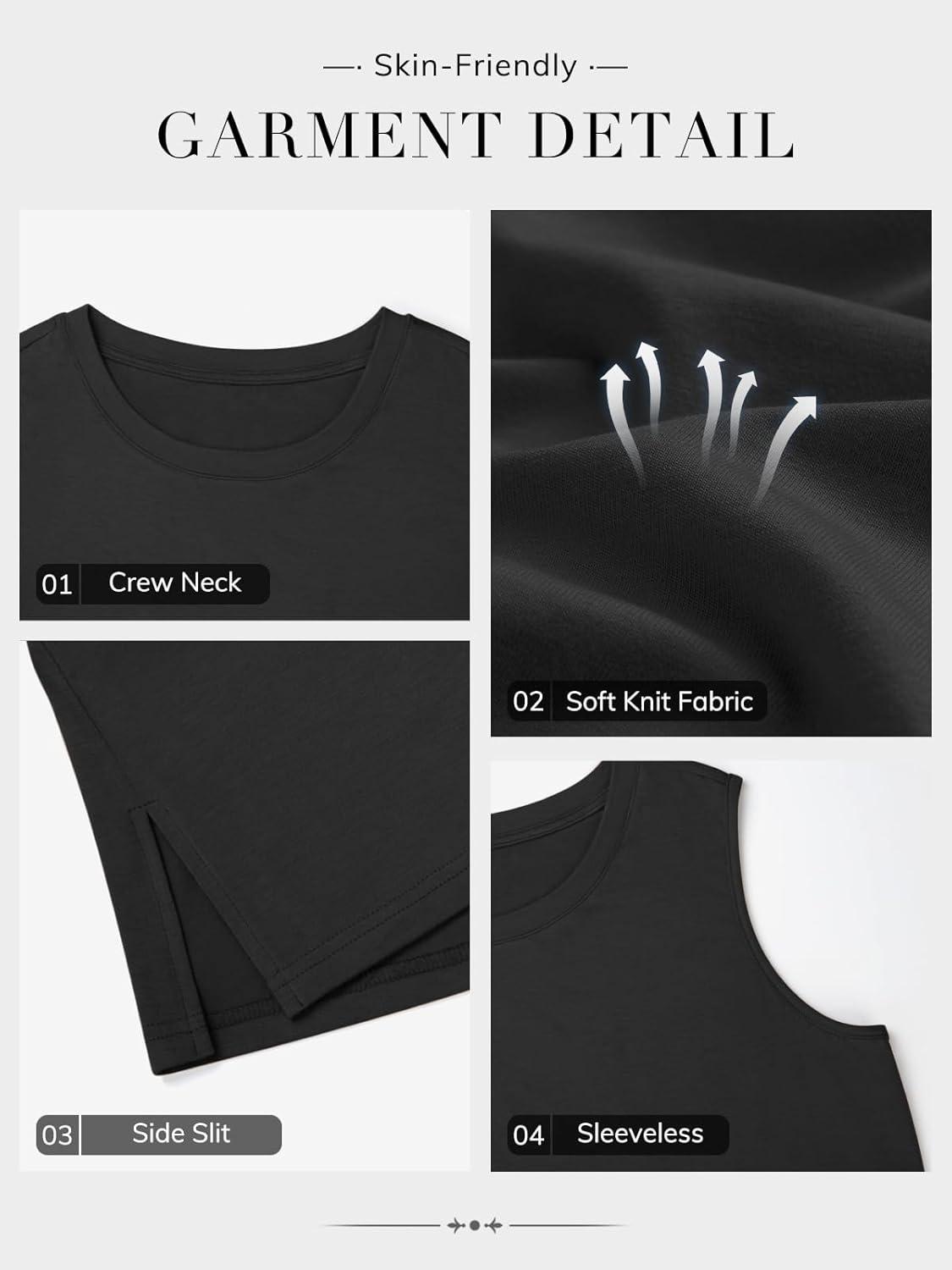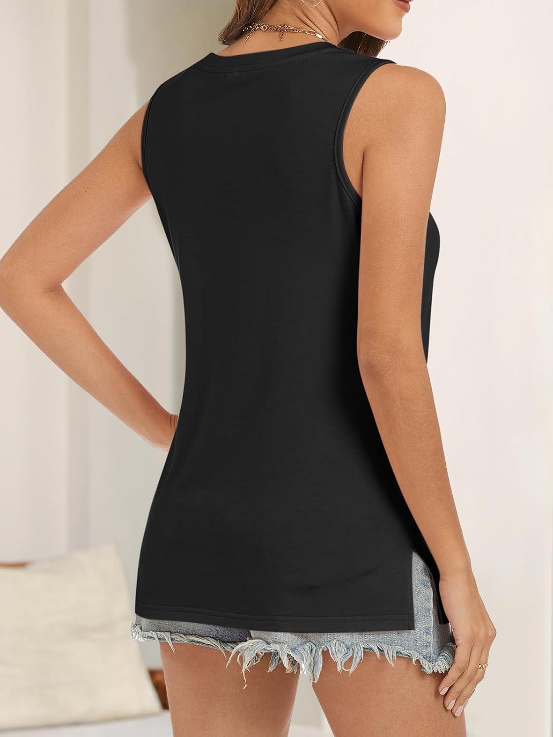 ATHMILE Tank Top for Women Summer Sleeveless Tops Casual Crewneck Side Split Tank Top Beach Vacation Outfits 2025(Black)