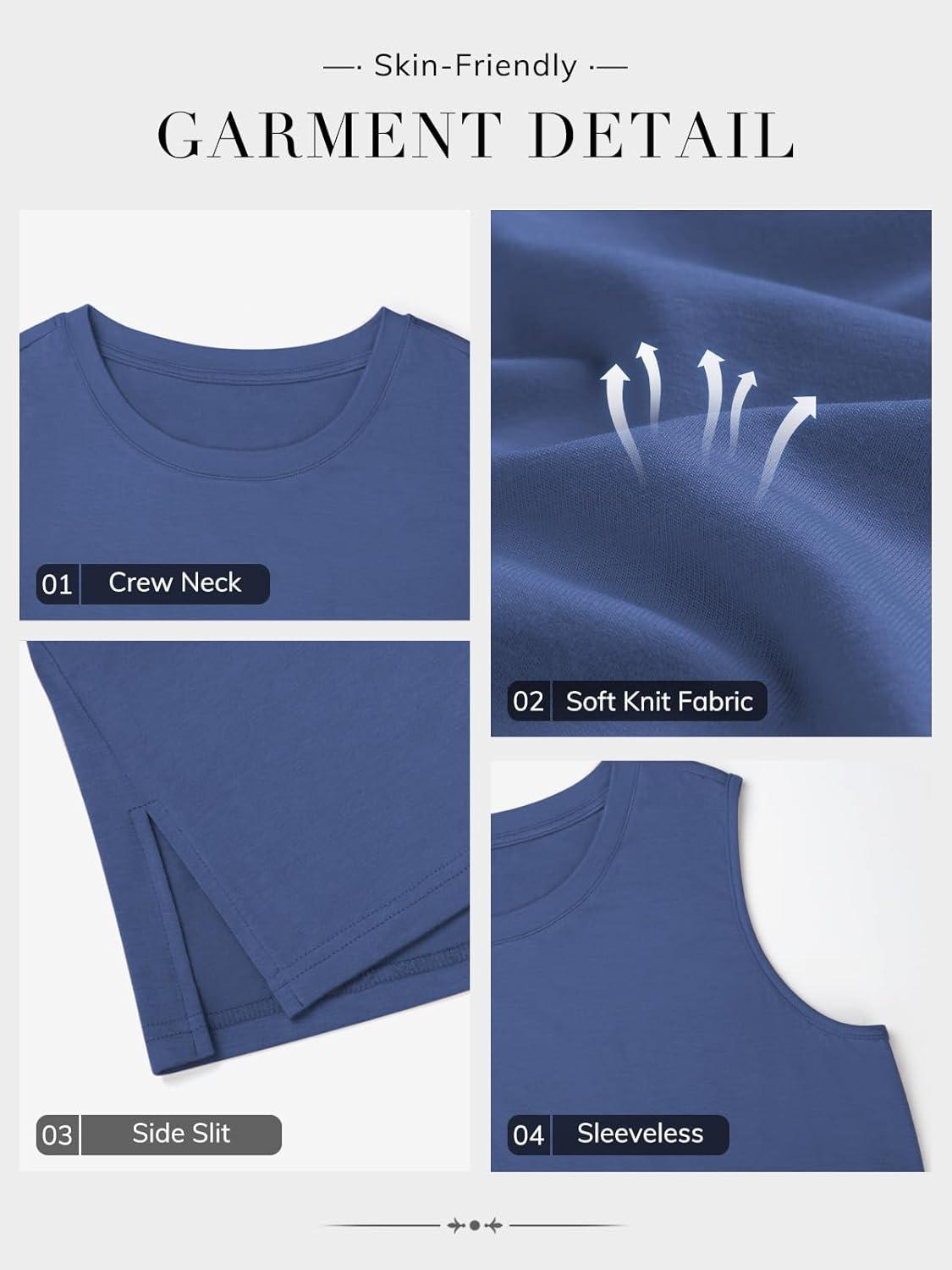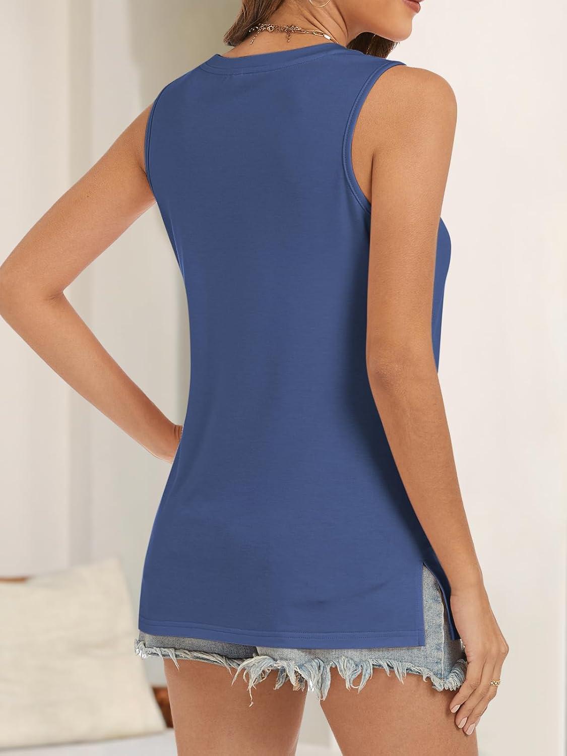 ATHMILE Tank Top for Women Summer Sleeveless Tops Casual Crewneck Side Split Tank Top Beach Vacation Outfits 2025(Blue)